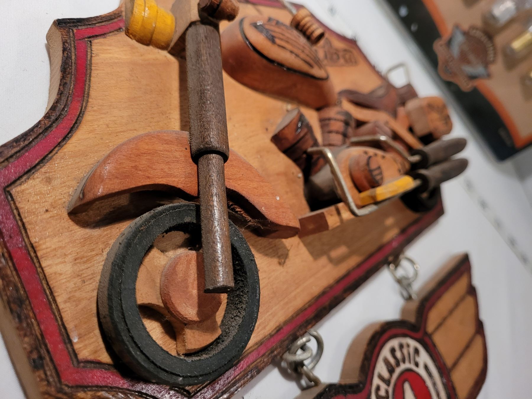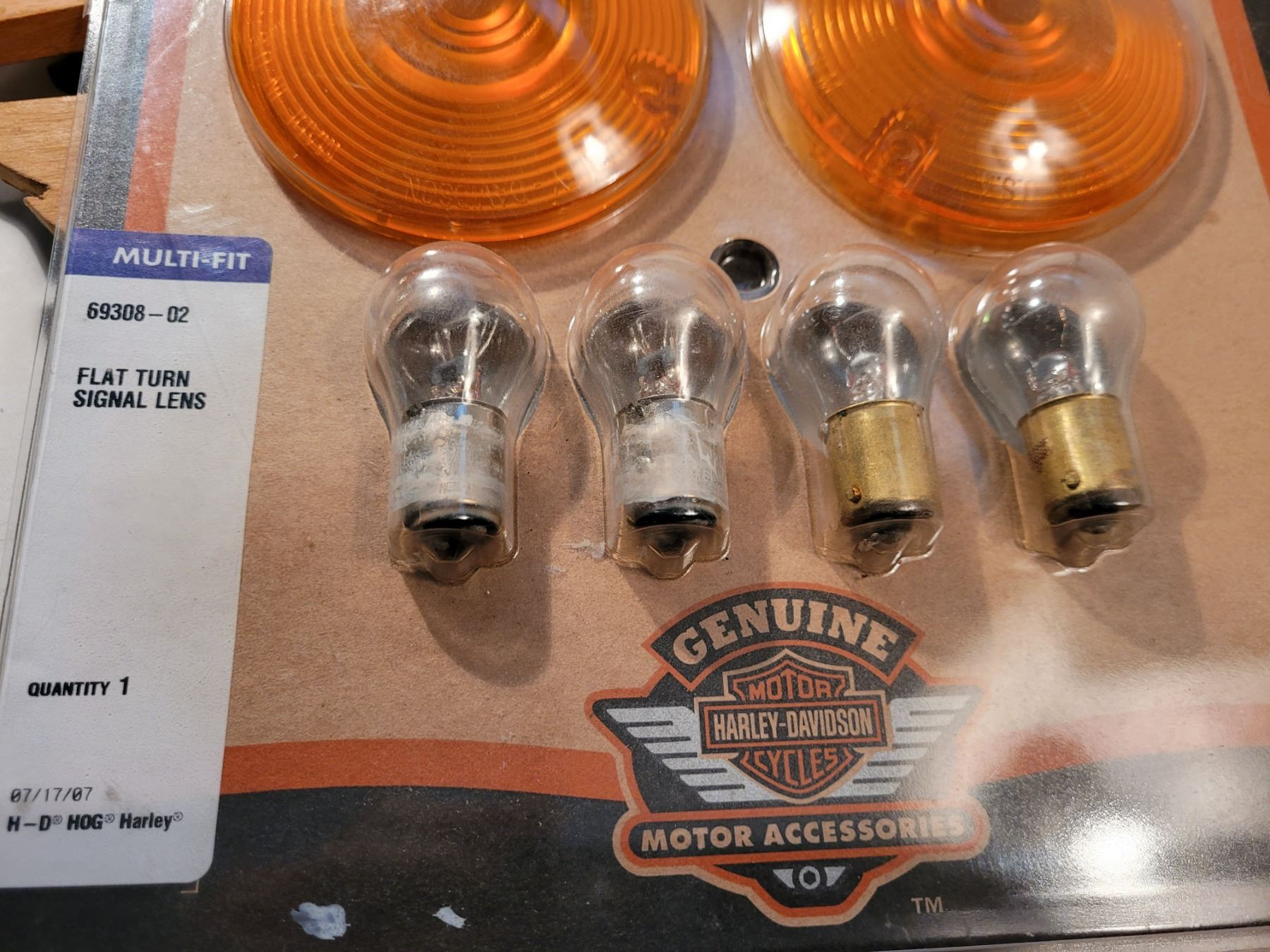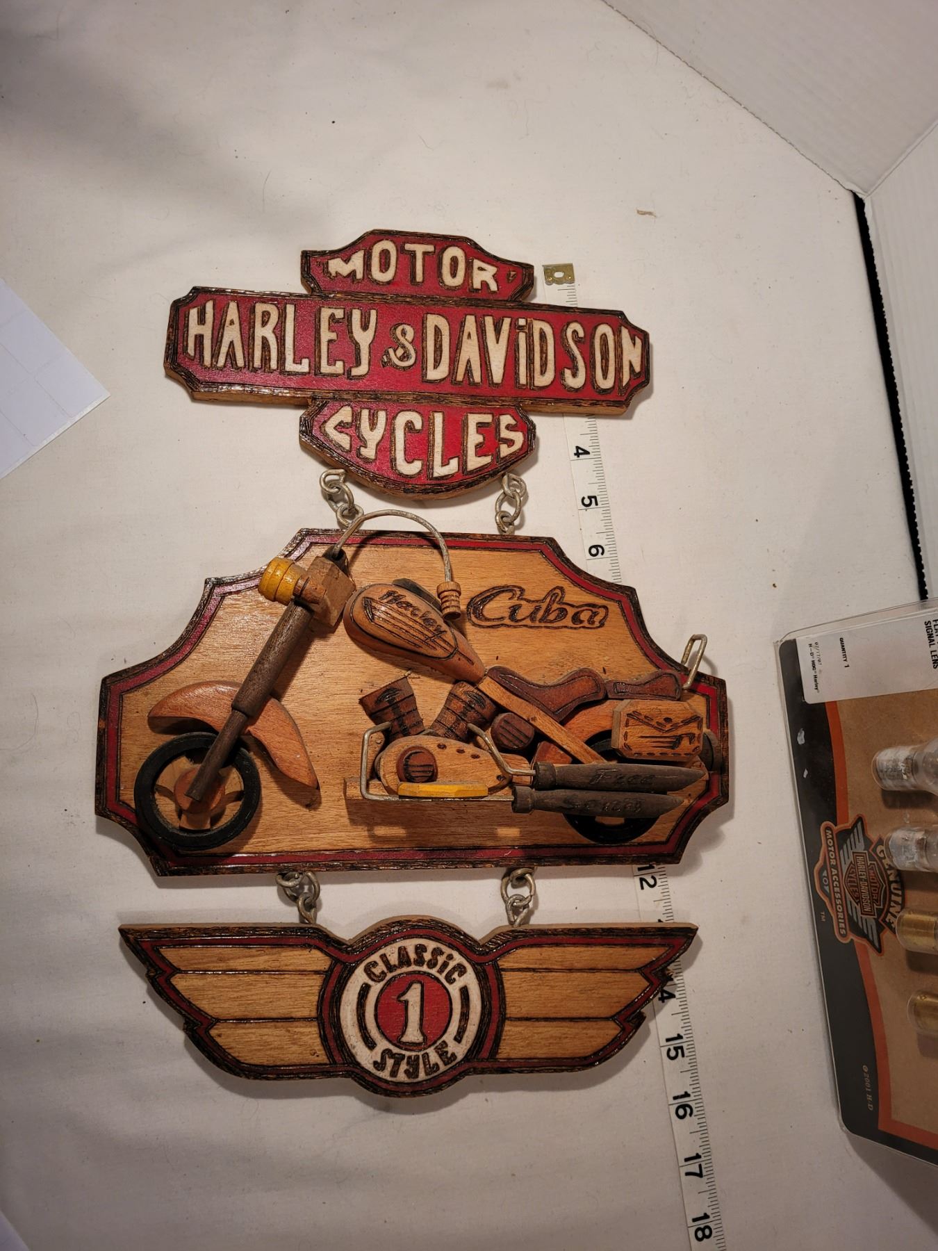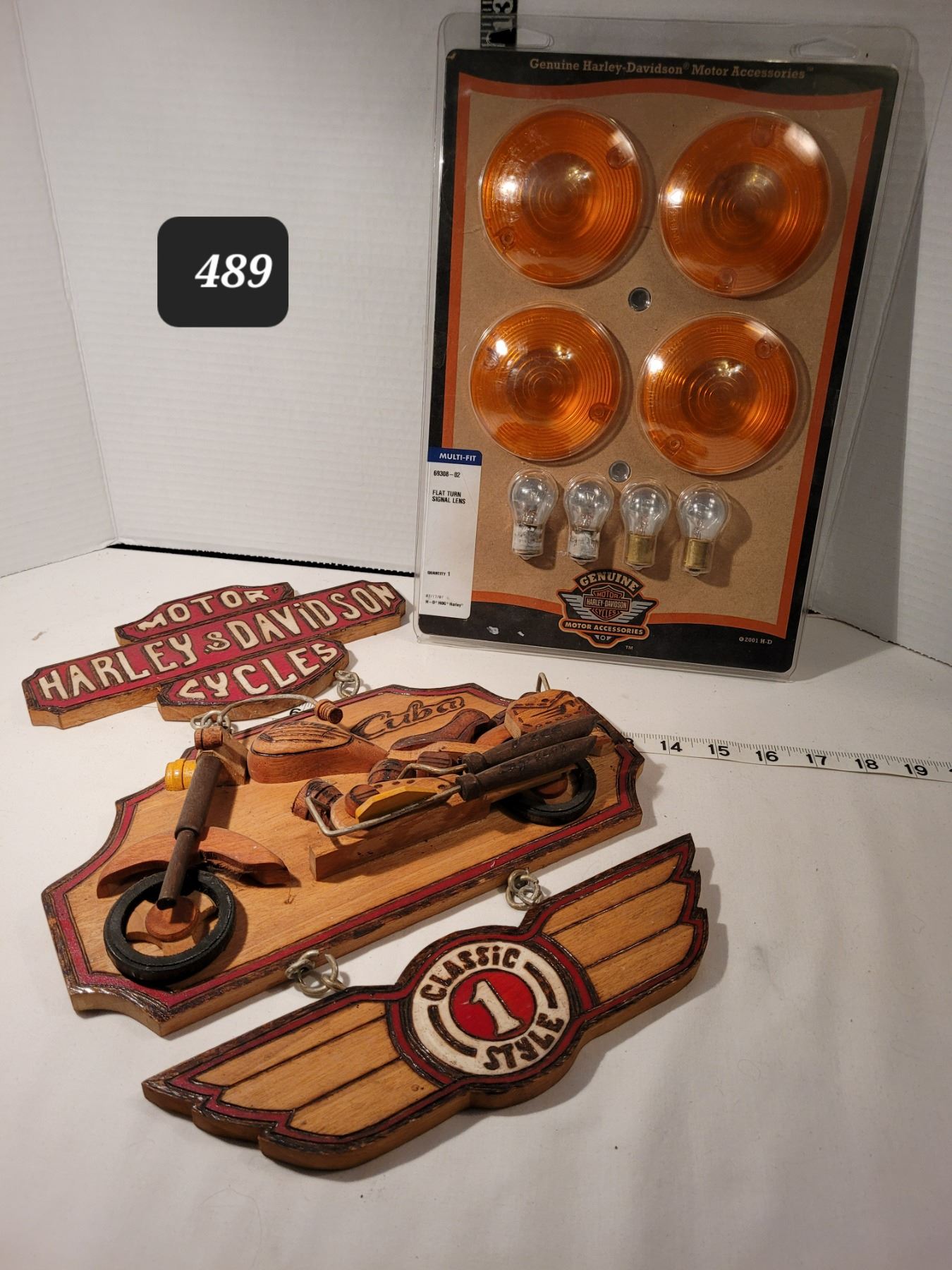 Harley Davidson wood wall decor & pkg. flat turn signal lens.