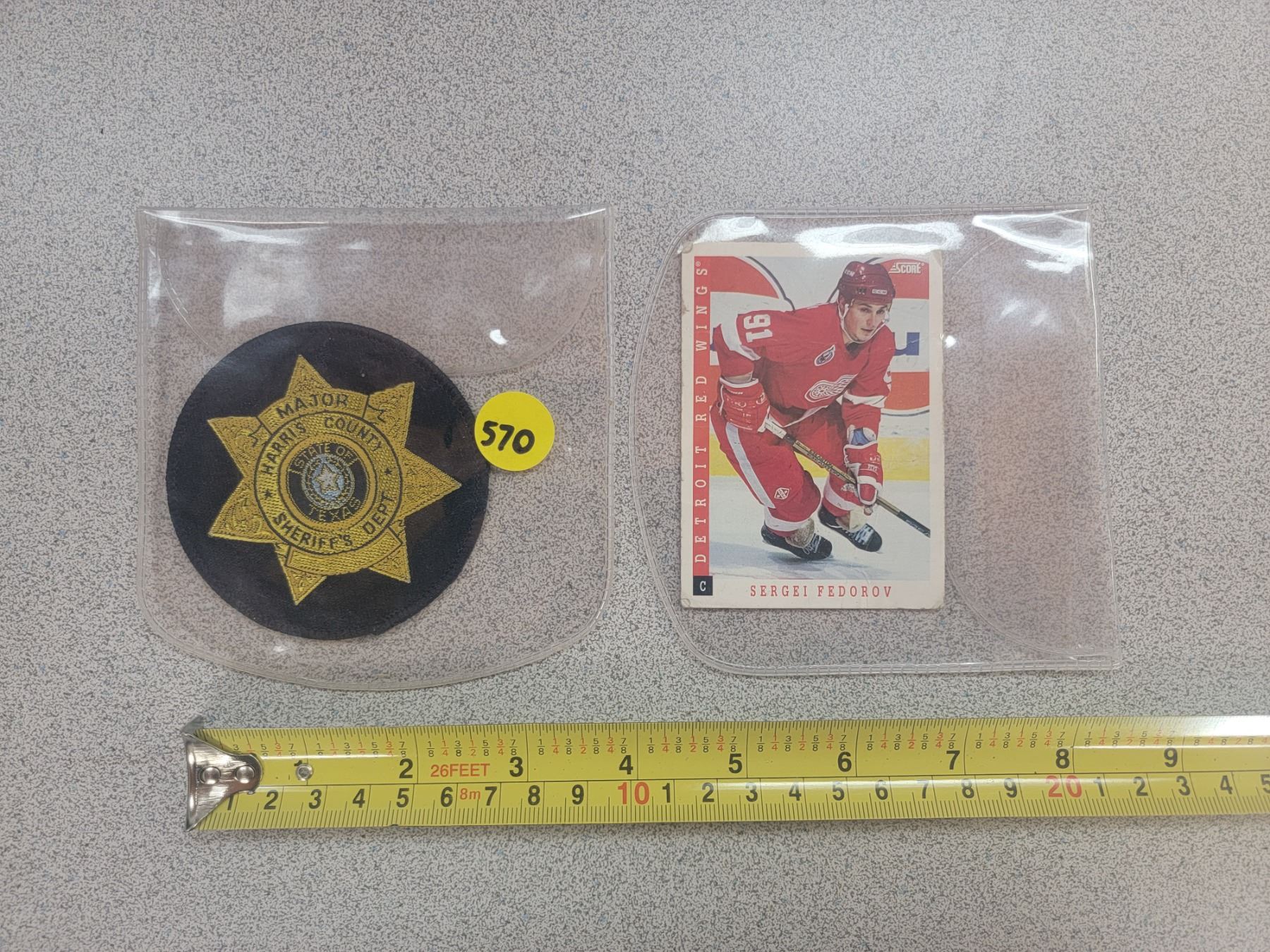 Harris County Sheriff patch + Sergei Fedorov hockey card