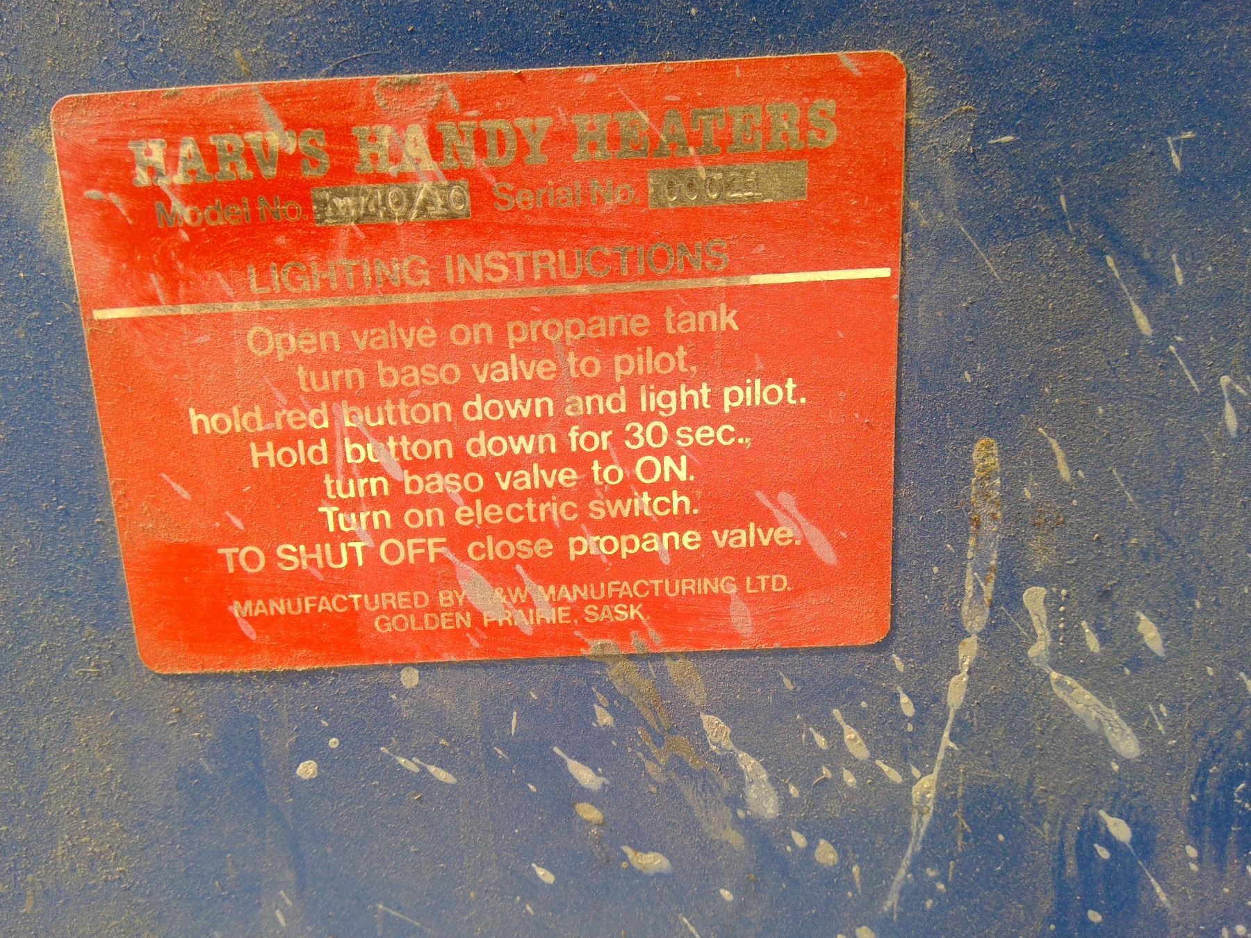 Harv's Handy Heater propane with electric blower- needs regulator