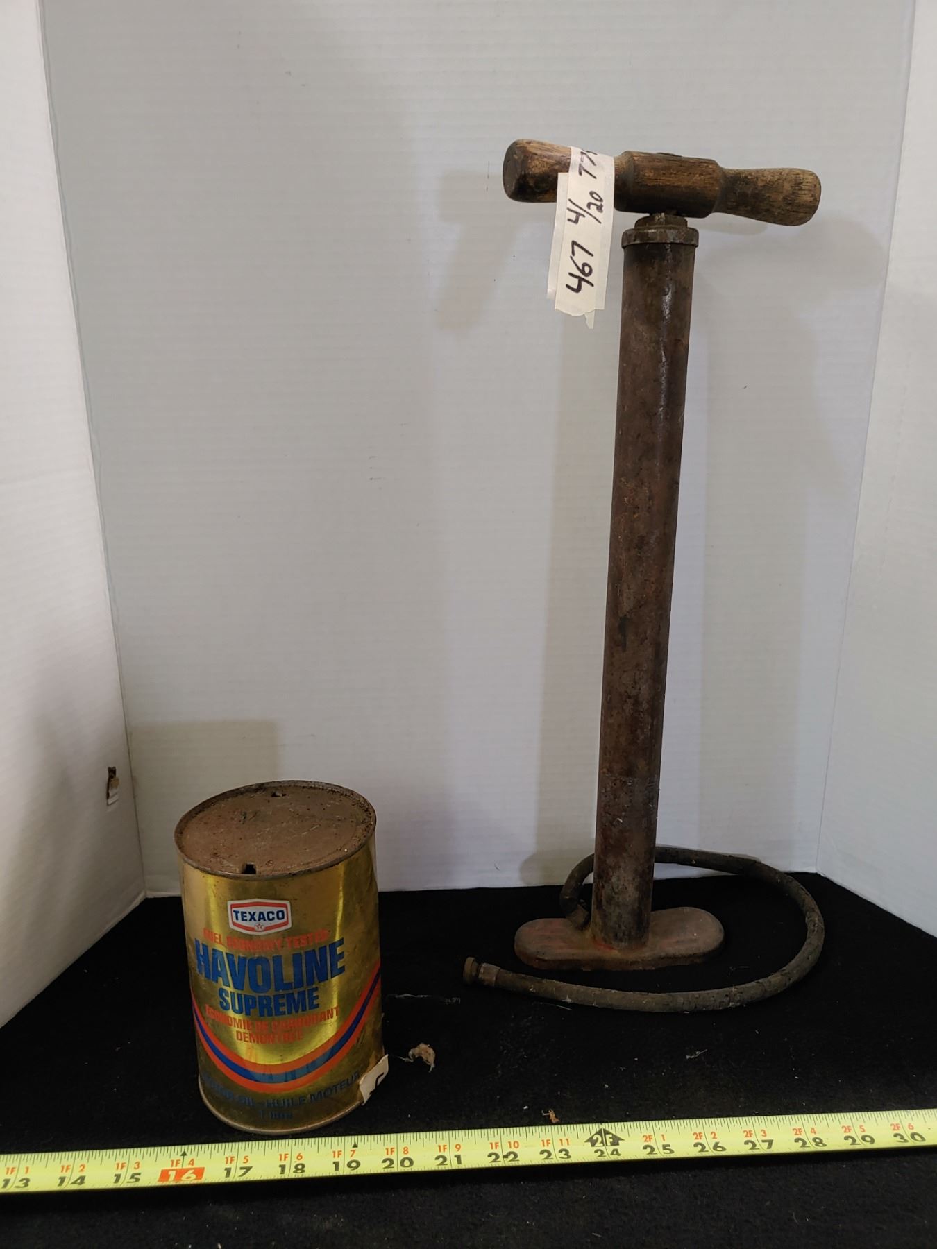 Havoline Can and Antique Bike Pump