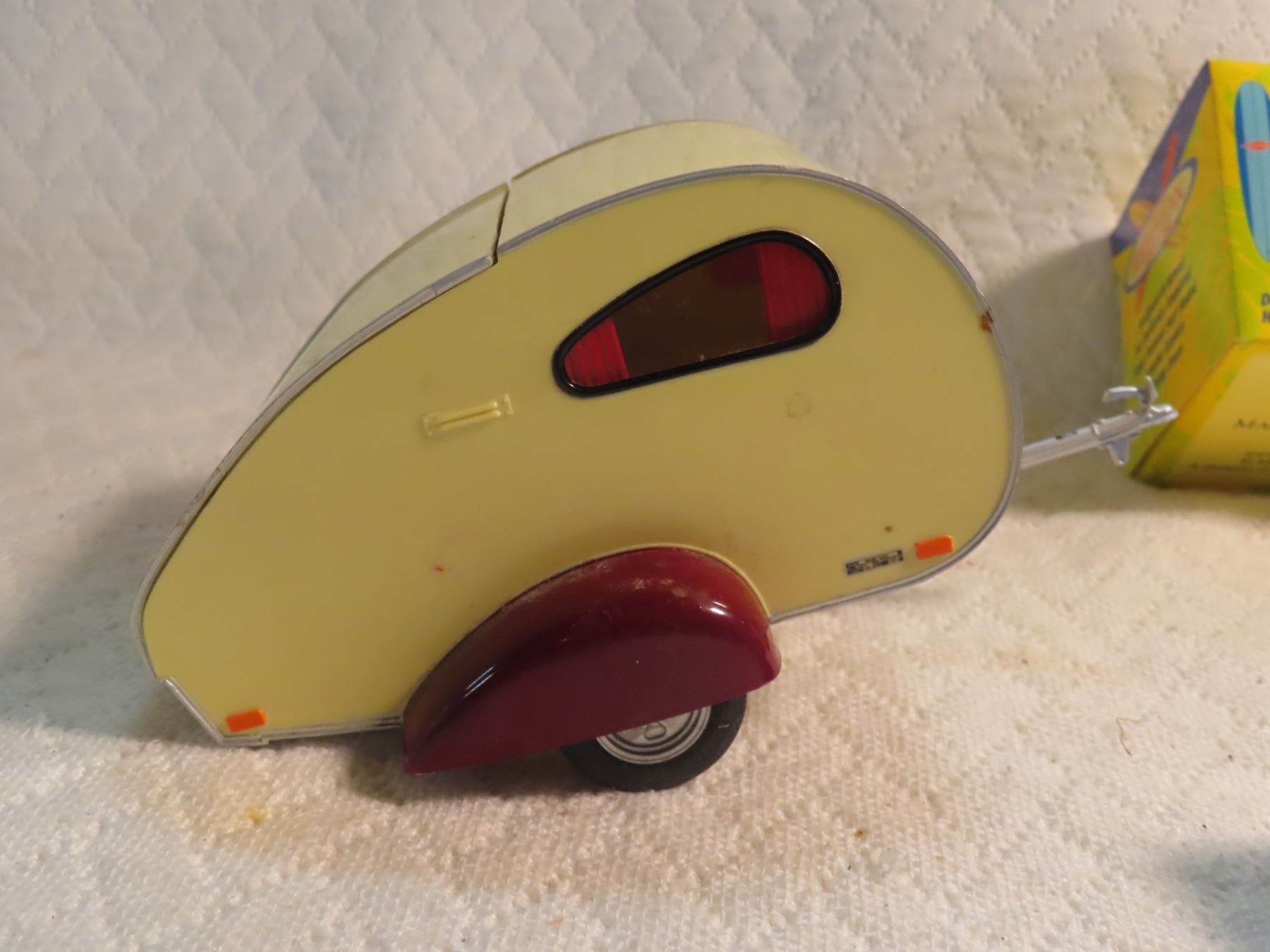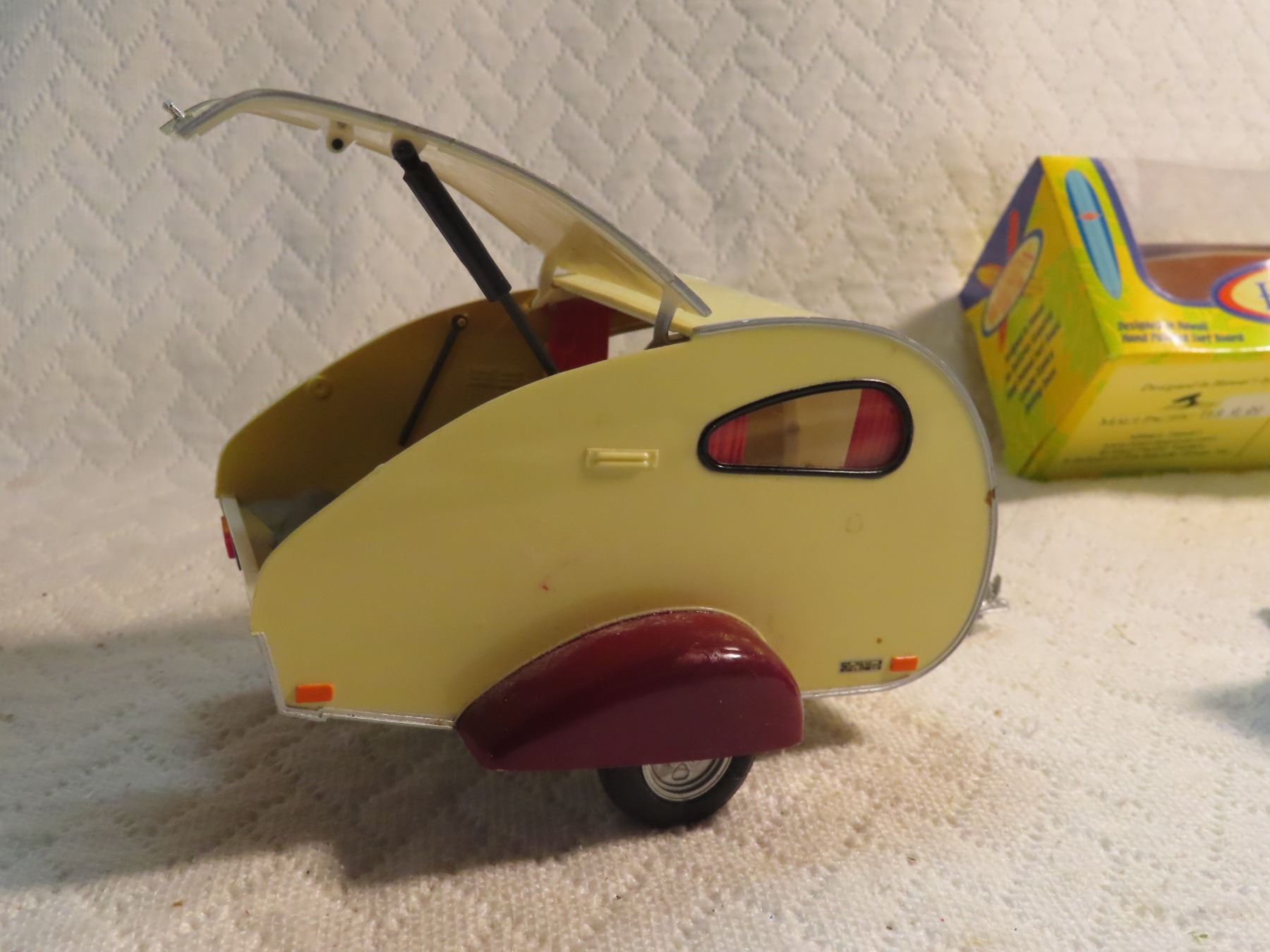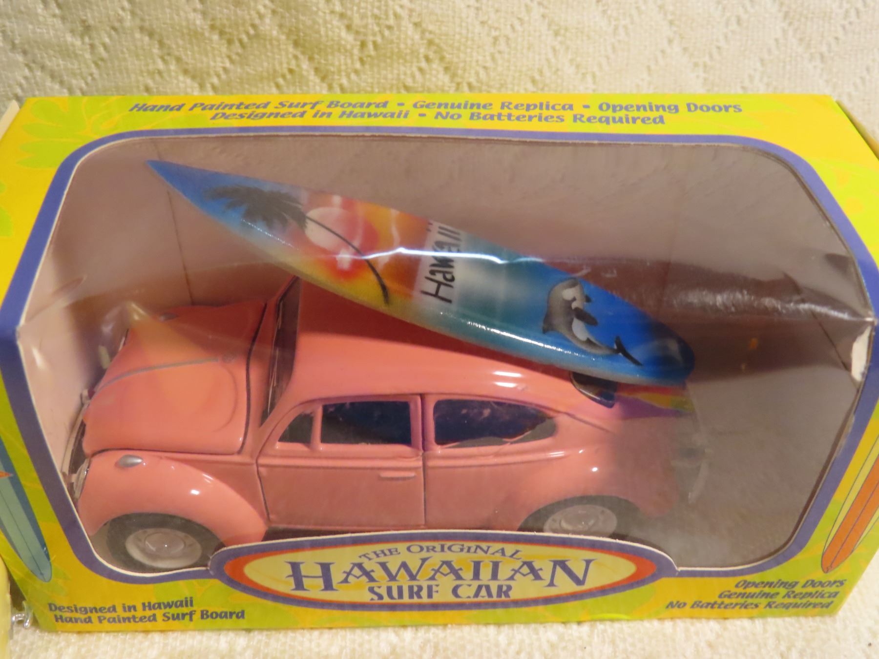 Hawaiian surf car, matchbox car, London taxi and airstream