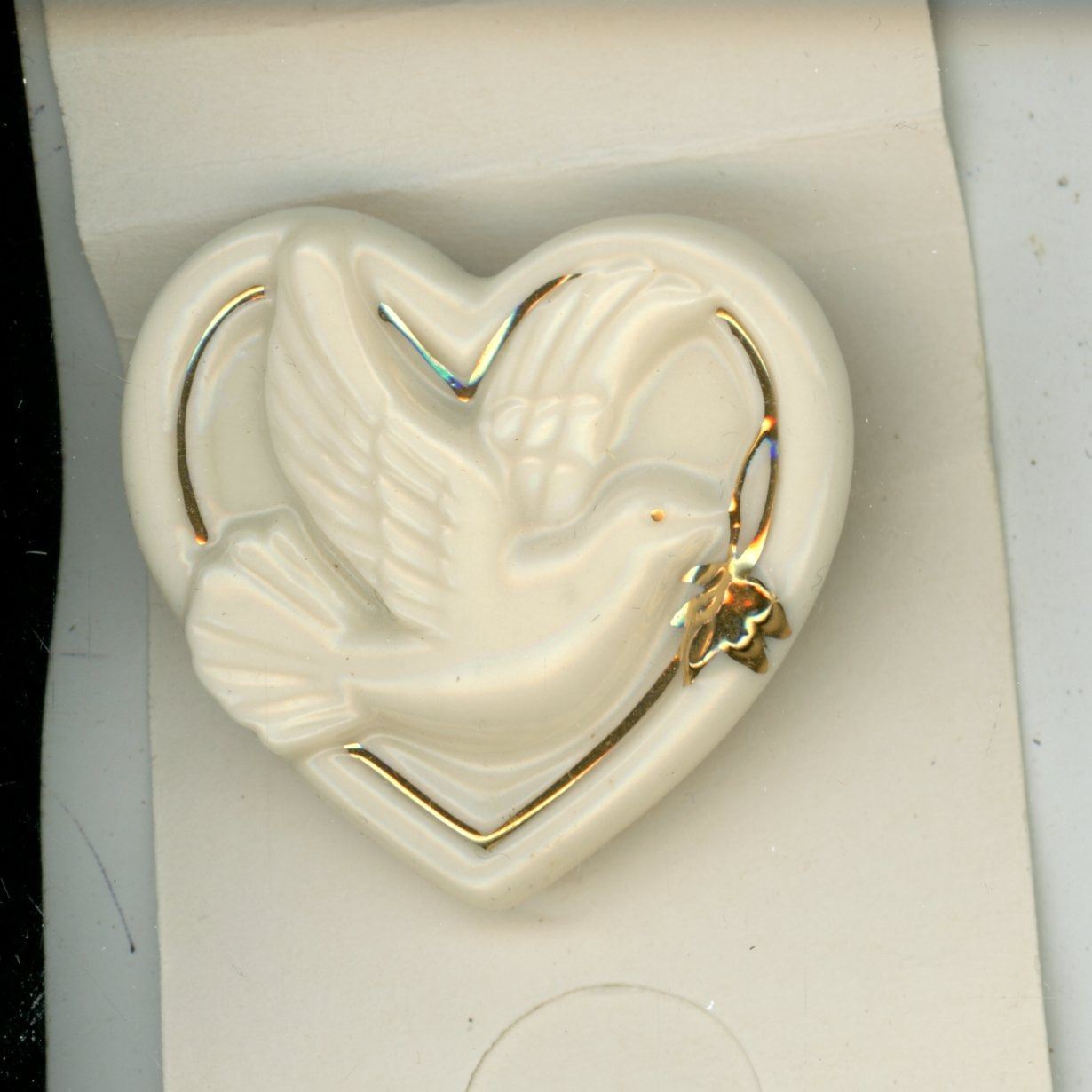 Heart-shaped pin with Dove. Made by Lenox. BU.
