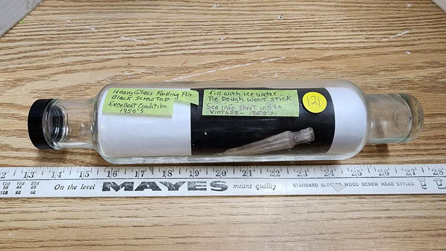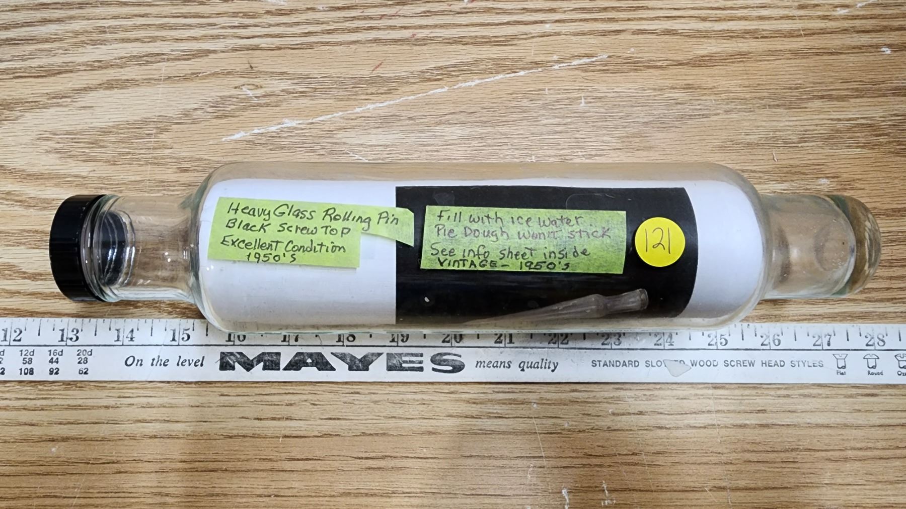 Heavy Glass Rolling Pin - Black Screw Top 1950's