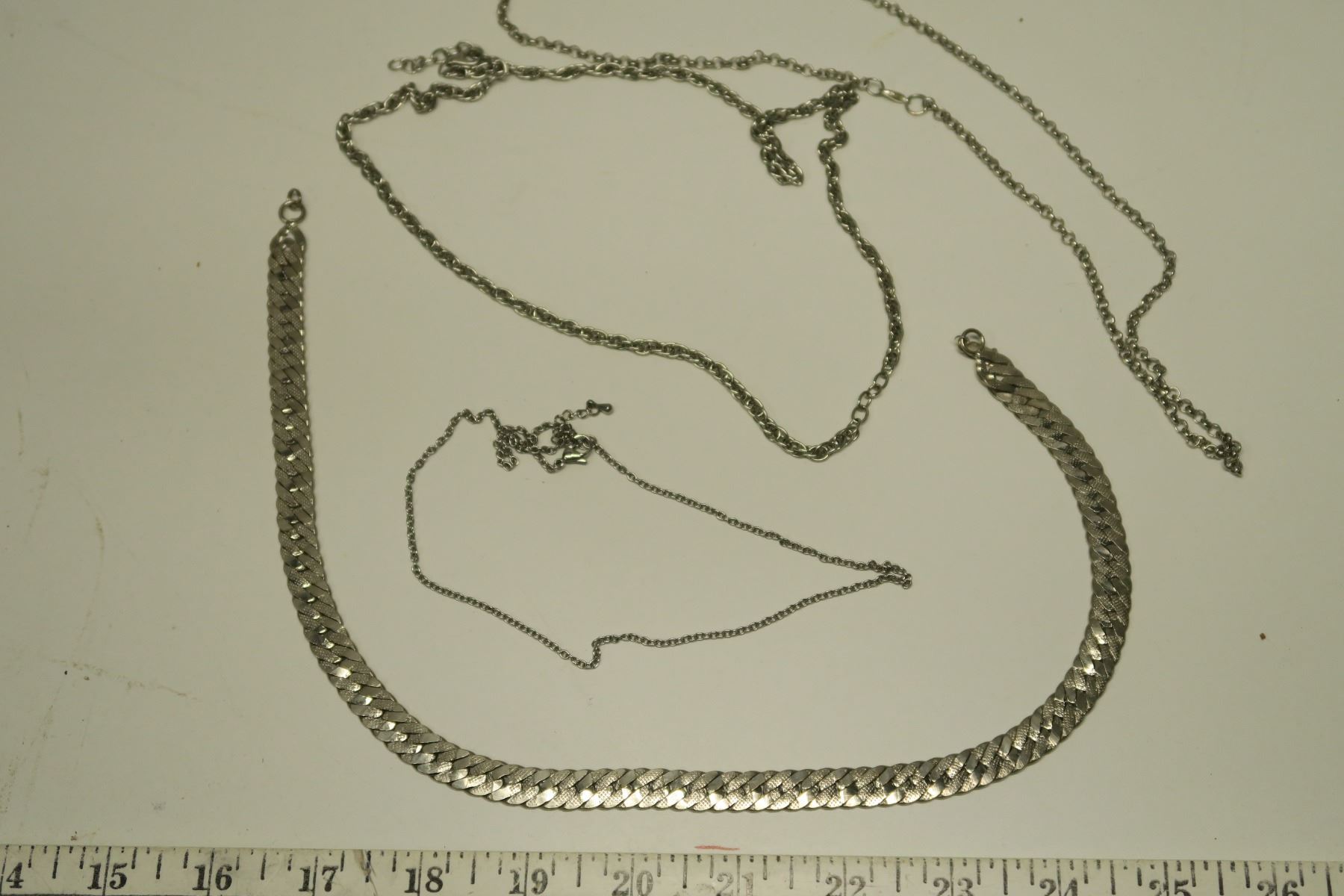 Heavy Silver Tone Necklace & Silver Tone Chain
