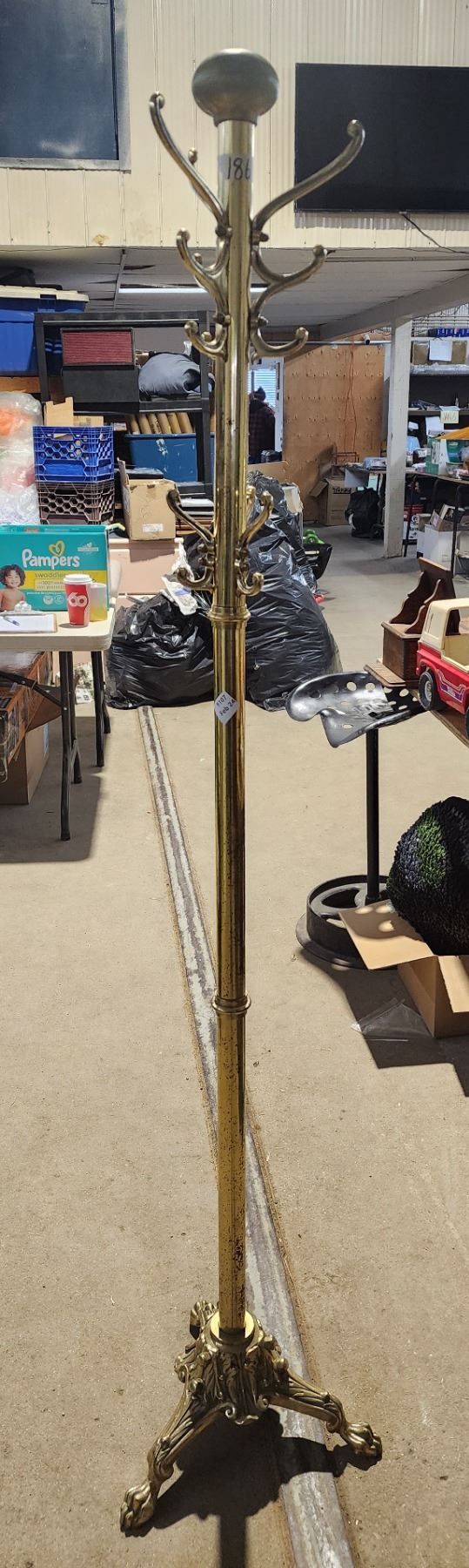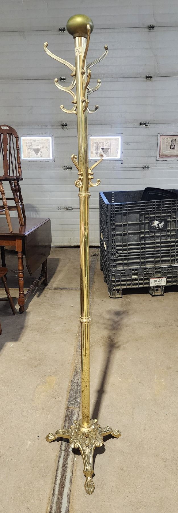 Heavy brass, claw footed coat rack - 70"H x 15"W