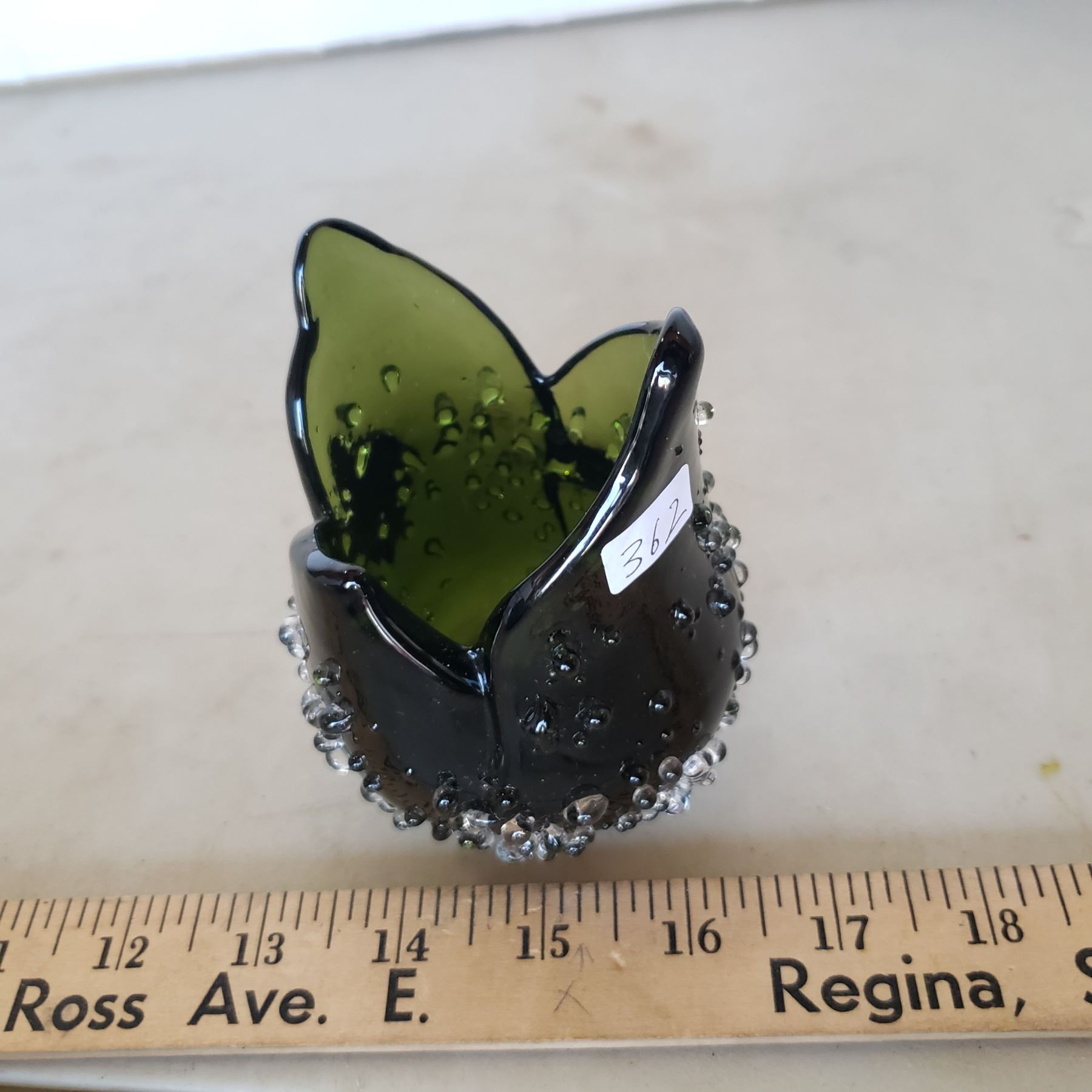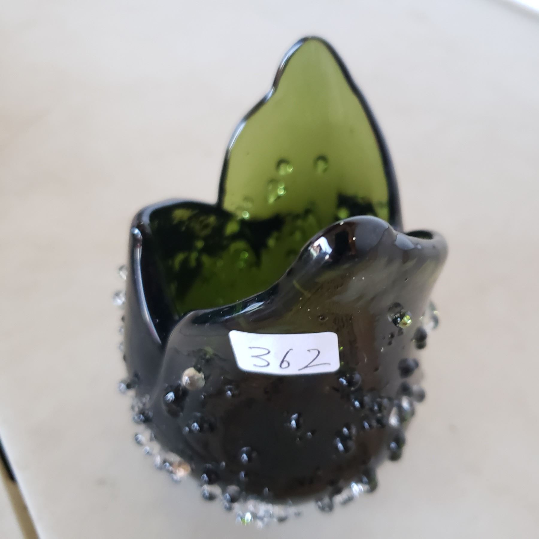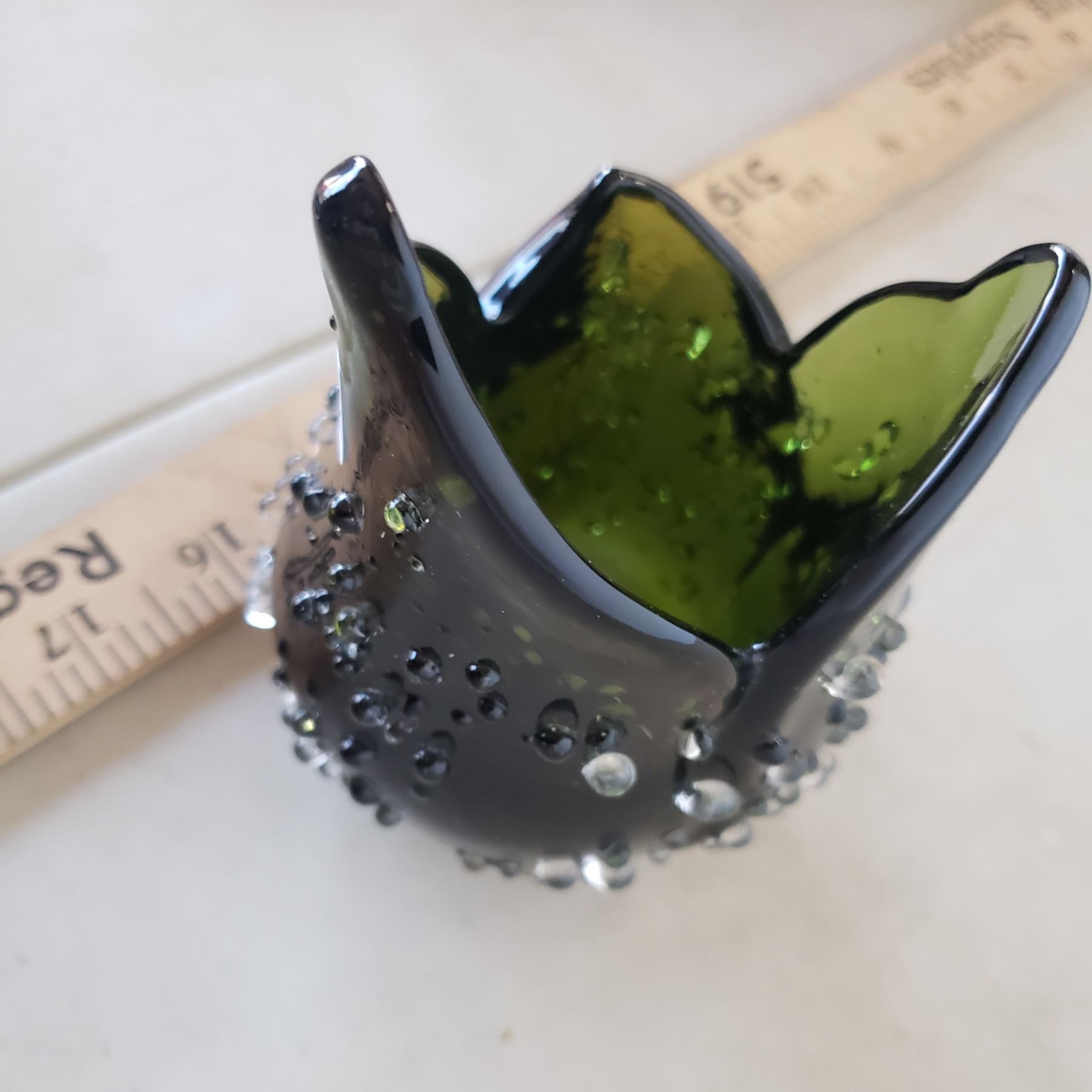 Heavy dark green candy dish