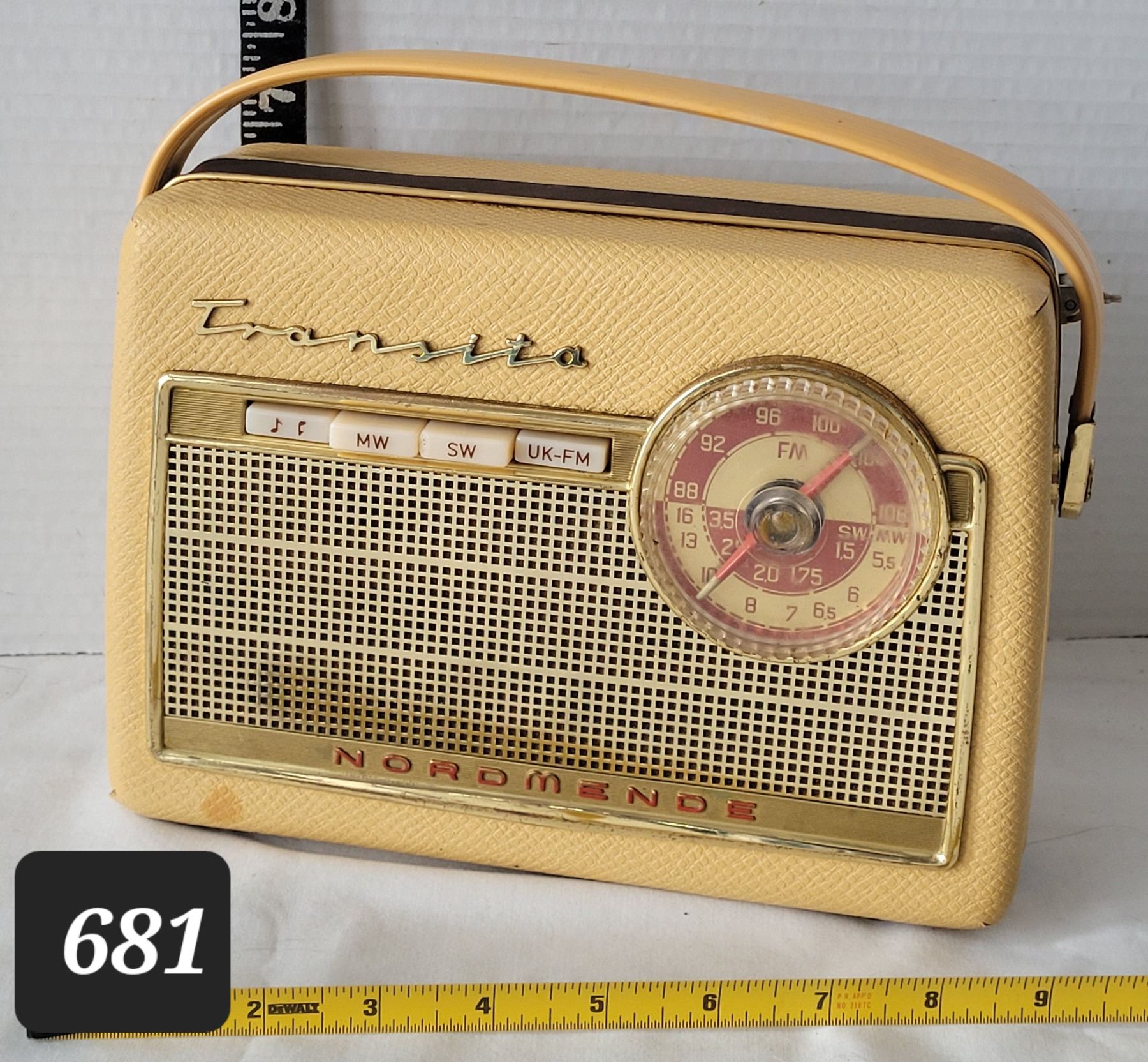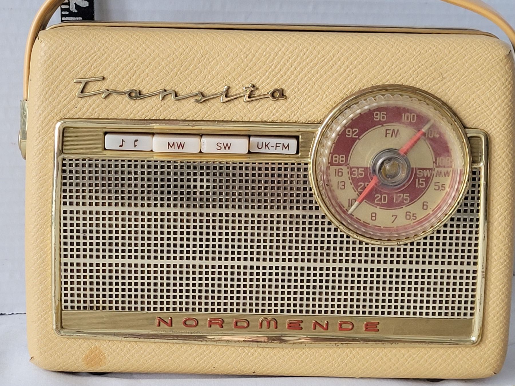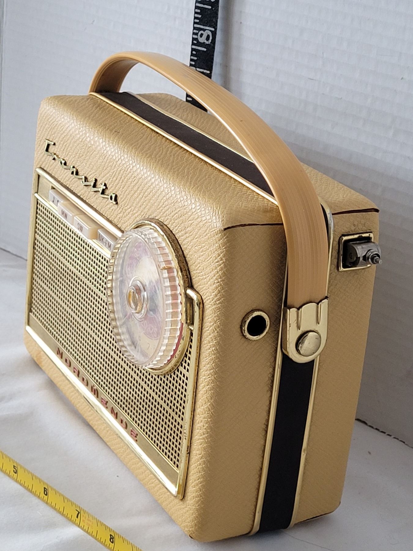 Highly sought Mid century Transita Normende portable radio. AM/FM & shortwave bands. Made in Western Germany.