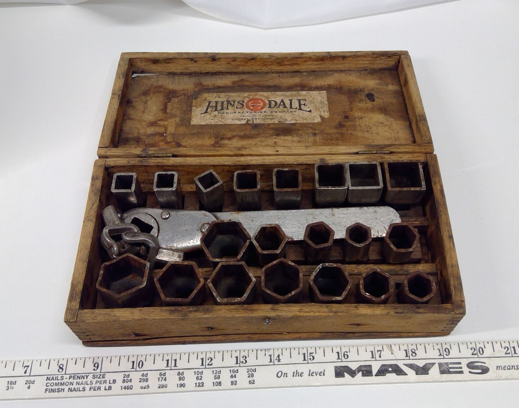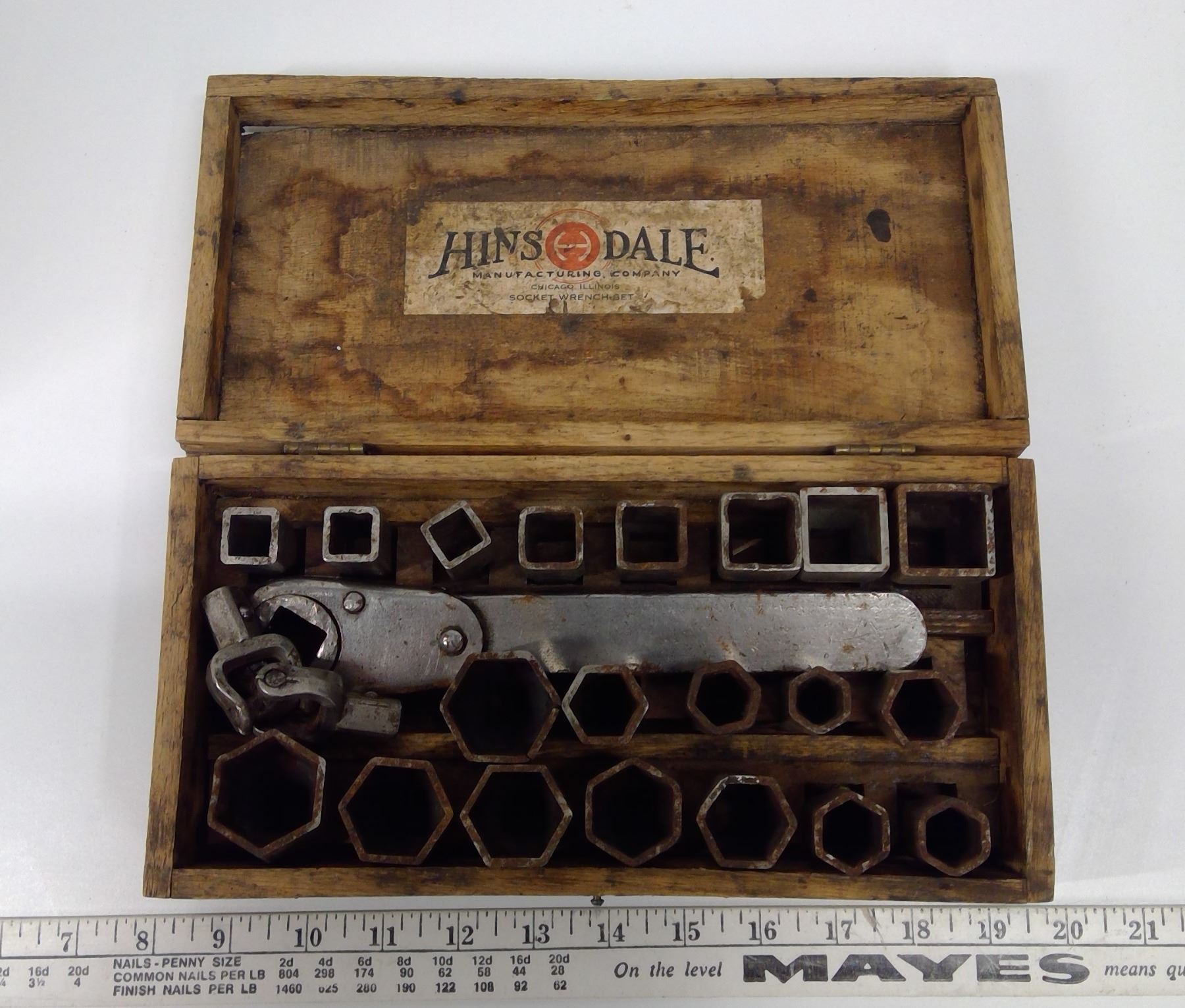Hinsdale Antique Socket Wrench Set in Fitted Wooden Box