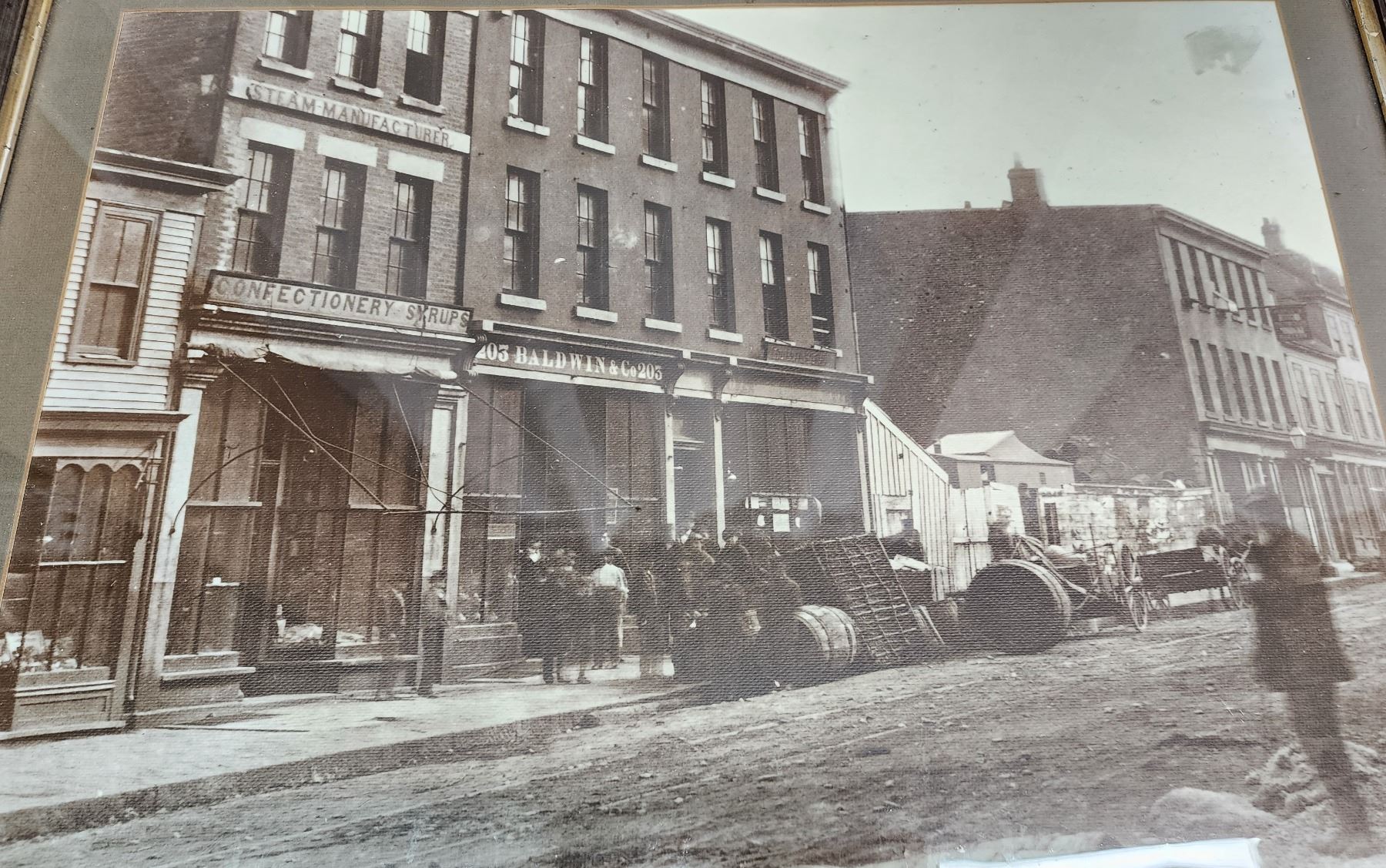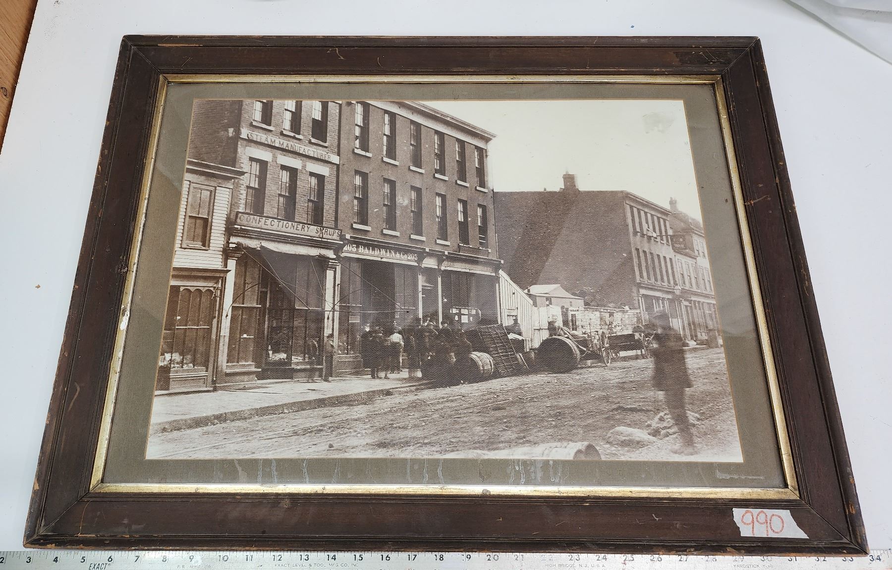 Historic Photo of a town, framed - Frame is lifting off, top right - 30"W x 23"H
