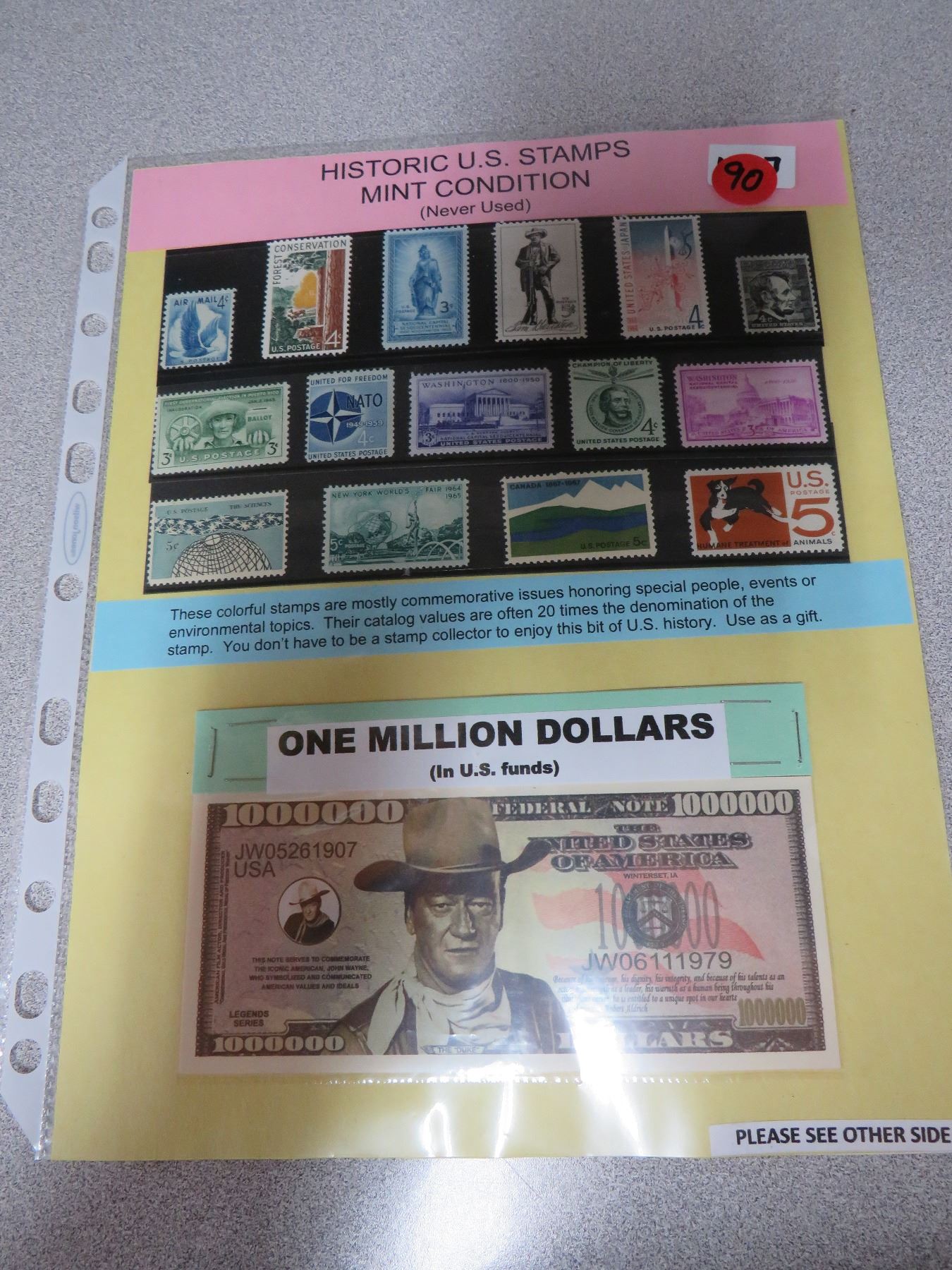 Historic US Stamps-15 Different-US John Wayne Million Dollar banknote
