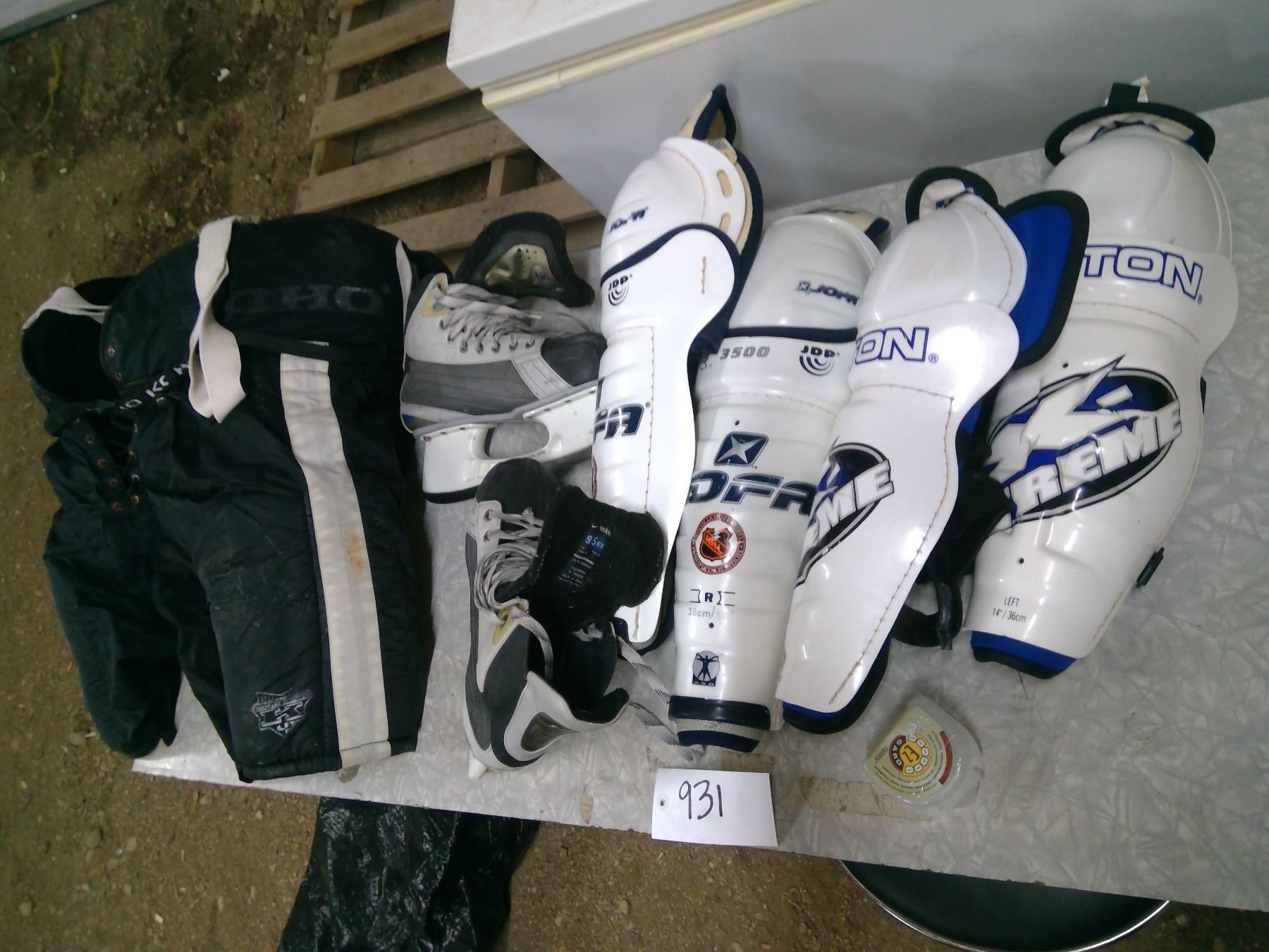 Hockey Equipment ( pants, skates (9.5EE), shin pads X2 ( 36 and 38 cm), mouth guard