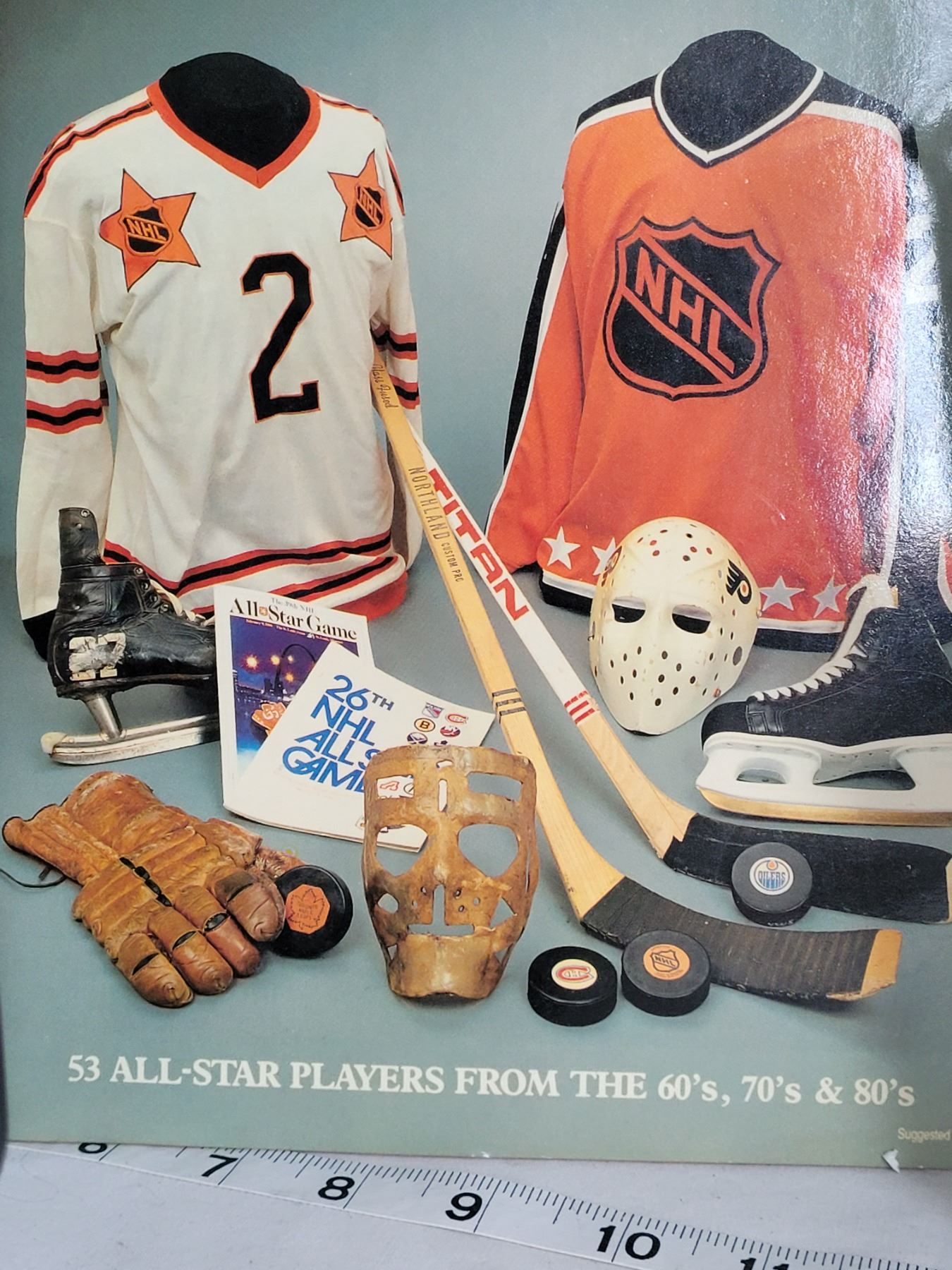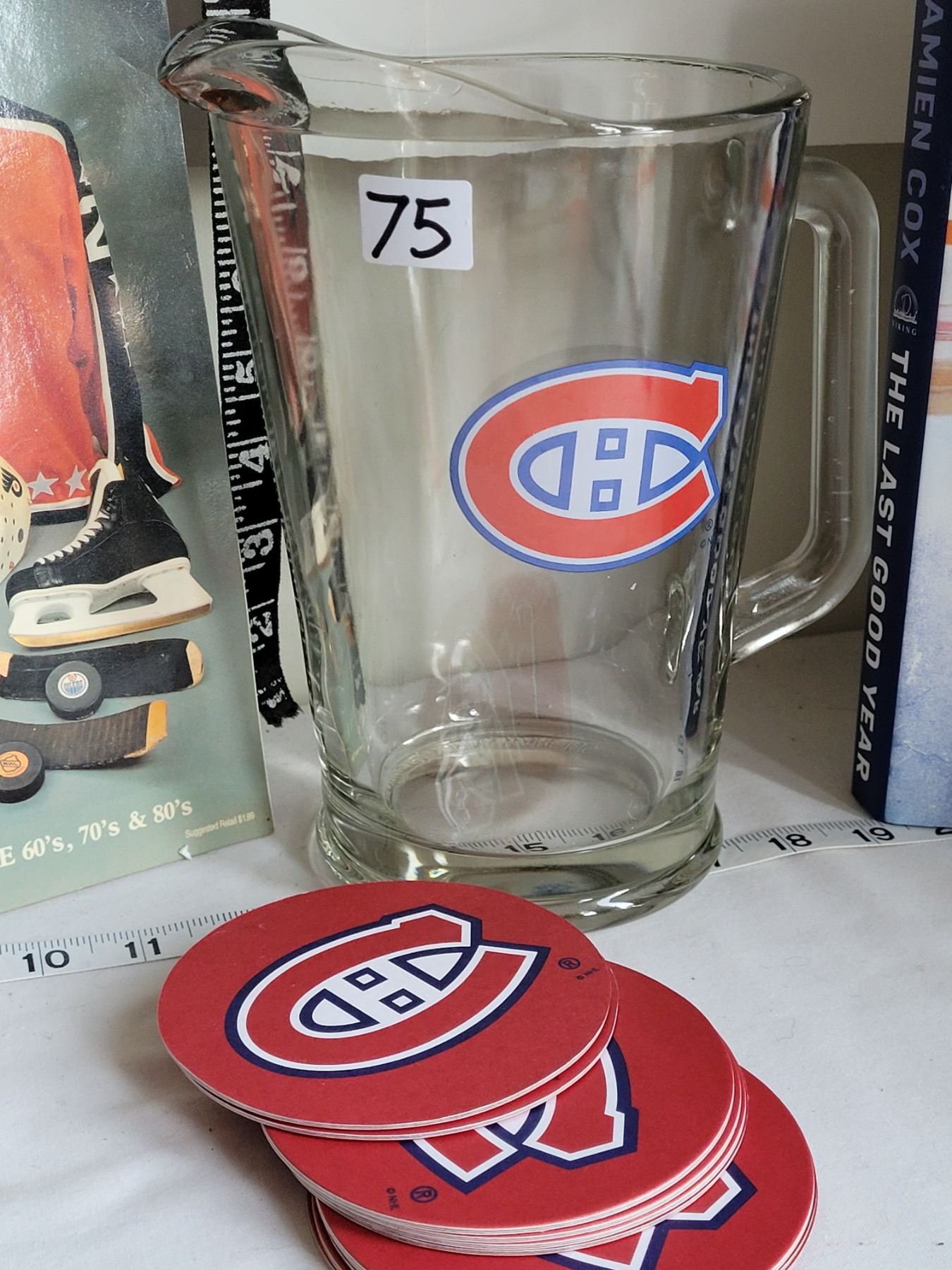 Hockey Lot. Esso all star book 1960's -'80's, pucks, Canadians drink pitcher & coasters, Oilers book