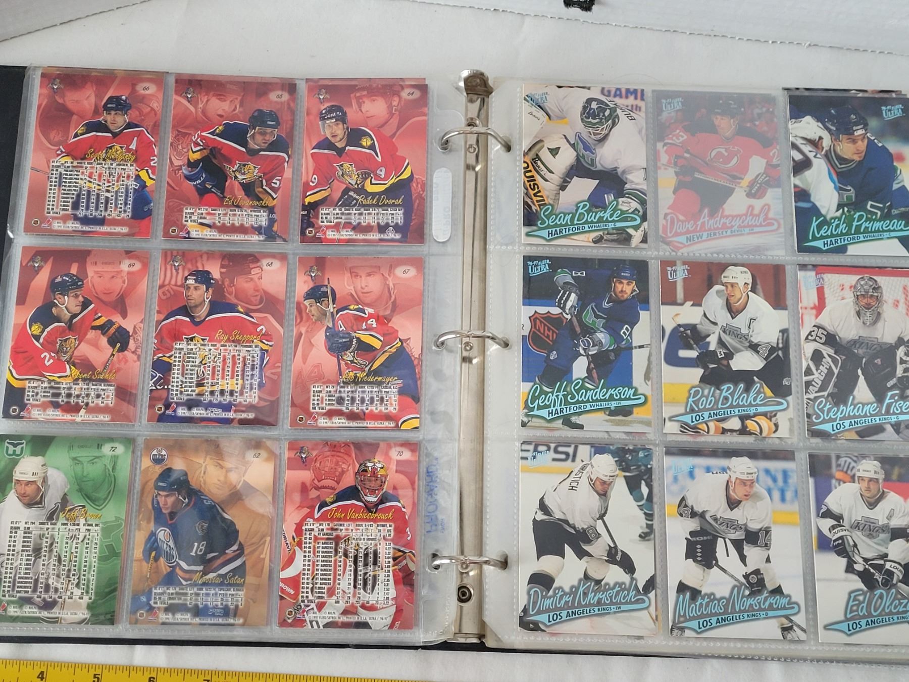 Hockey card album & box. 1997 Fleer/ Skybox. Impact Power play. 1996 Blade Runners. Upper Deck Choice.