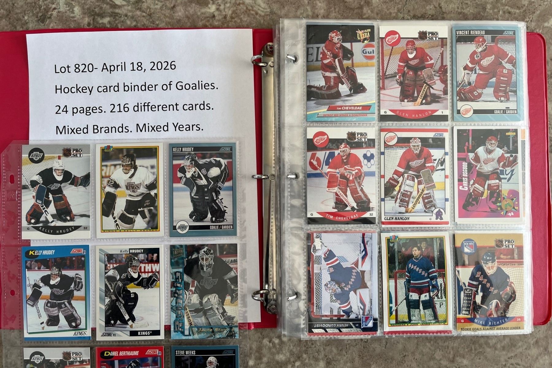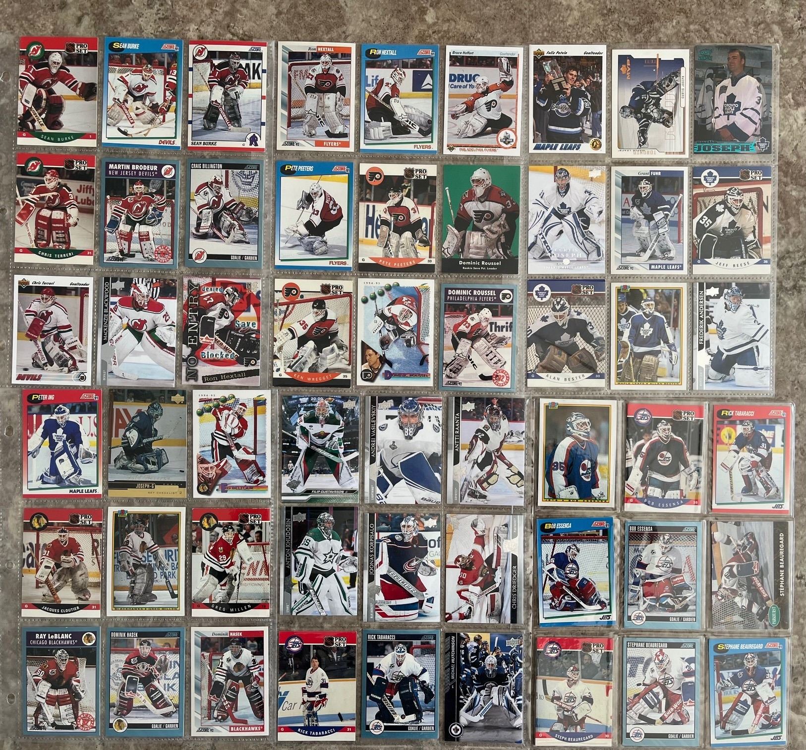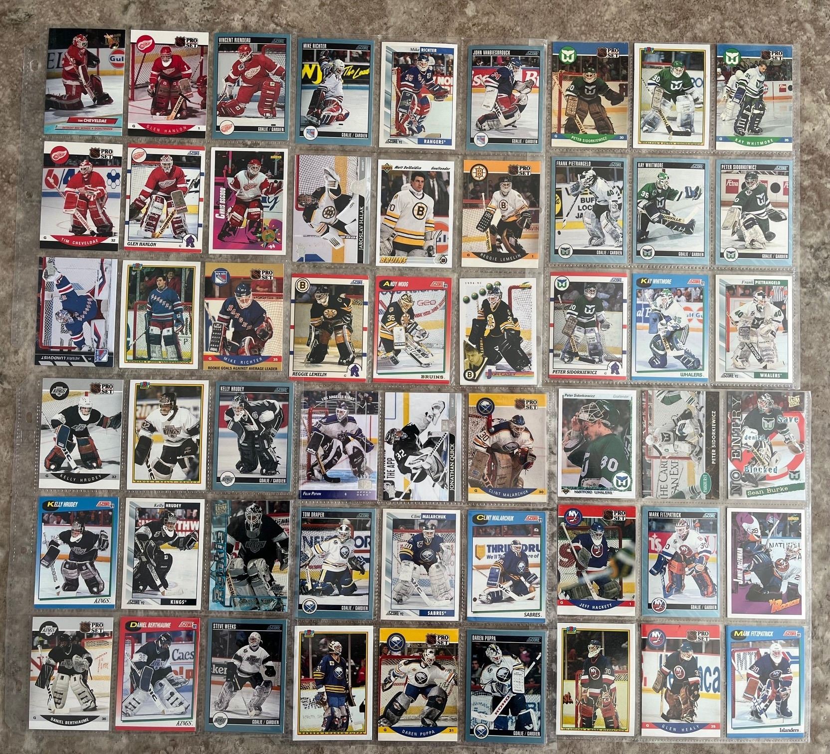 Hockey card binder of Goalies. 24 pages. 216 different cards. Mixed Brands. Mixed Years.
