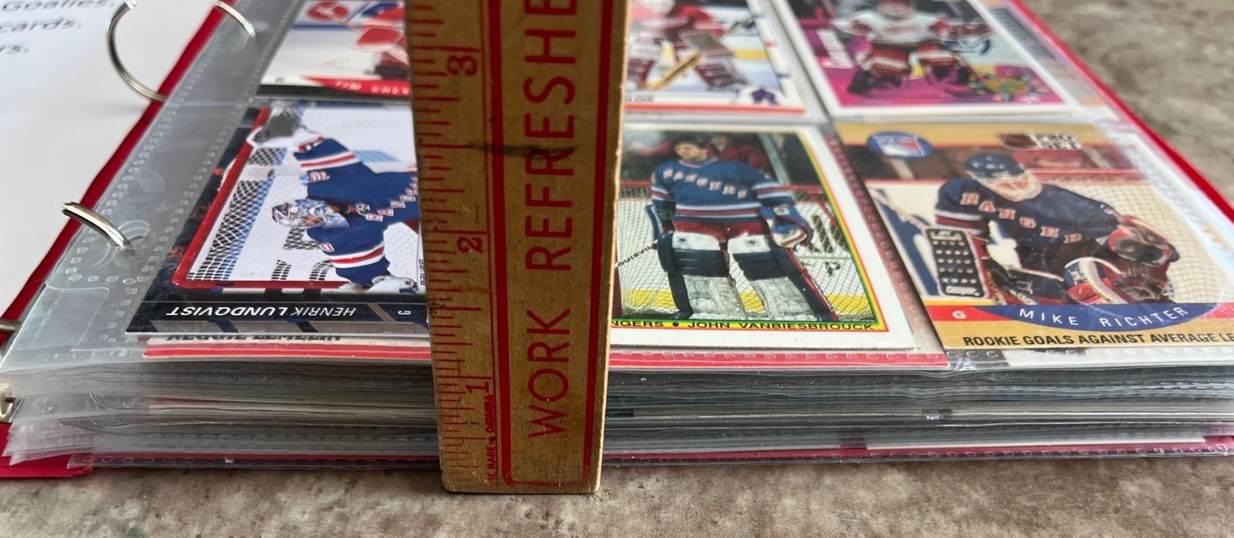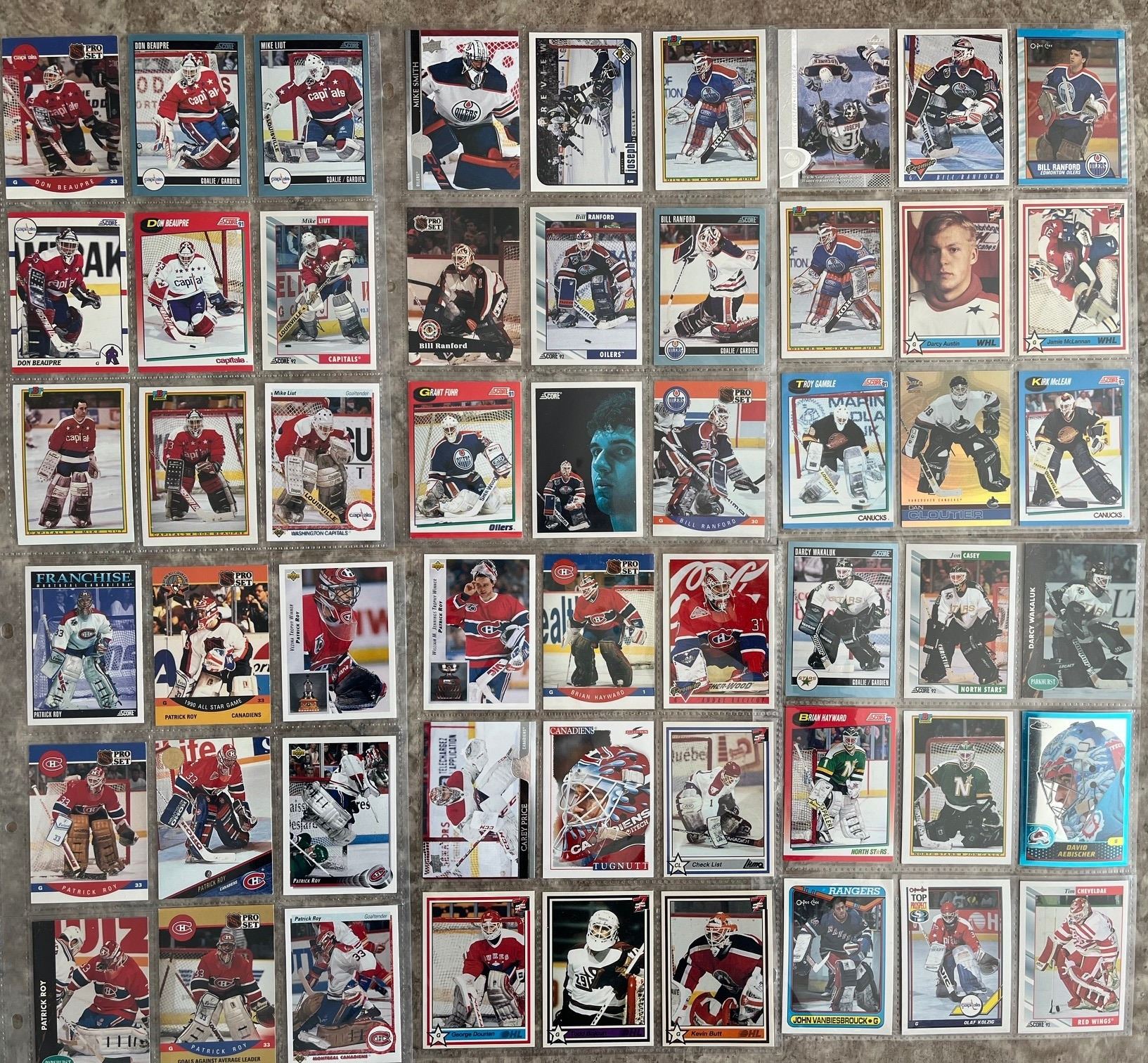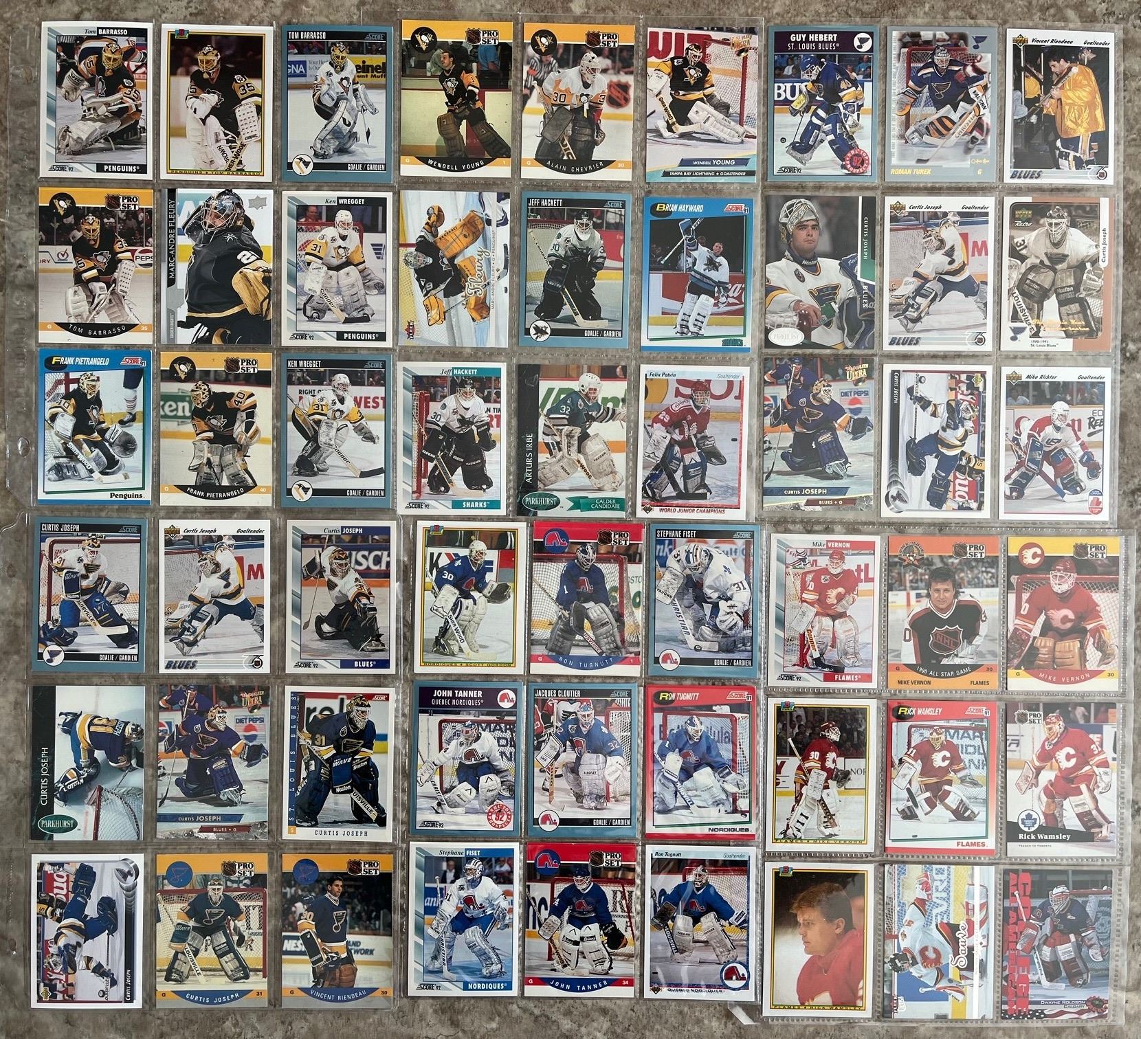 Hockey card binder of Goalies. 24 pages. 216 different cards. Mixed Brands. Mixed Years.