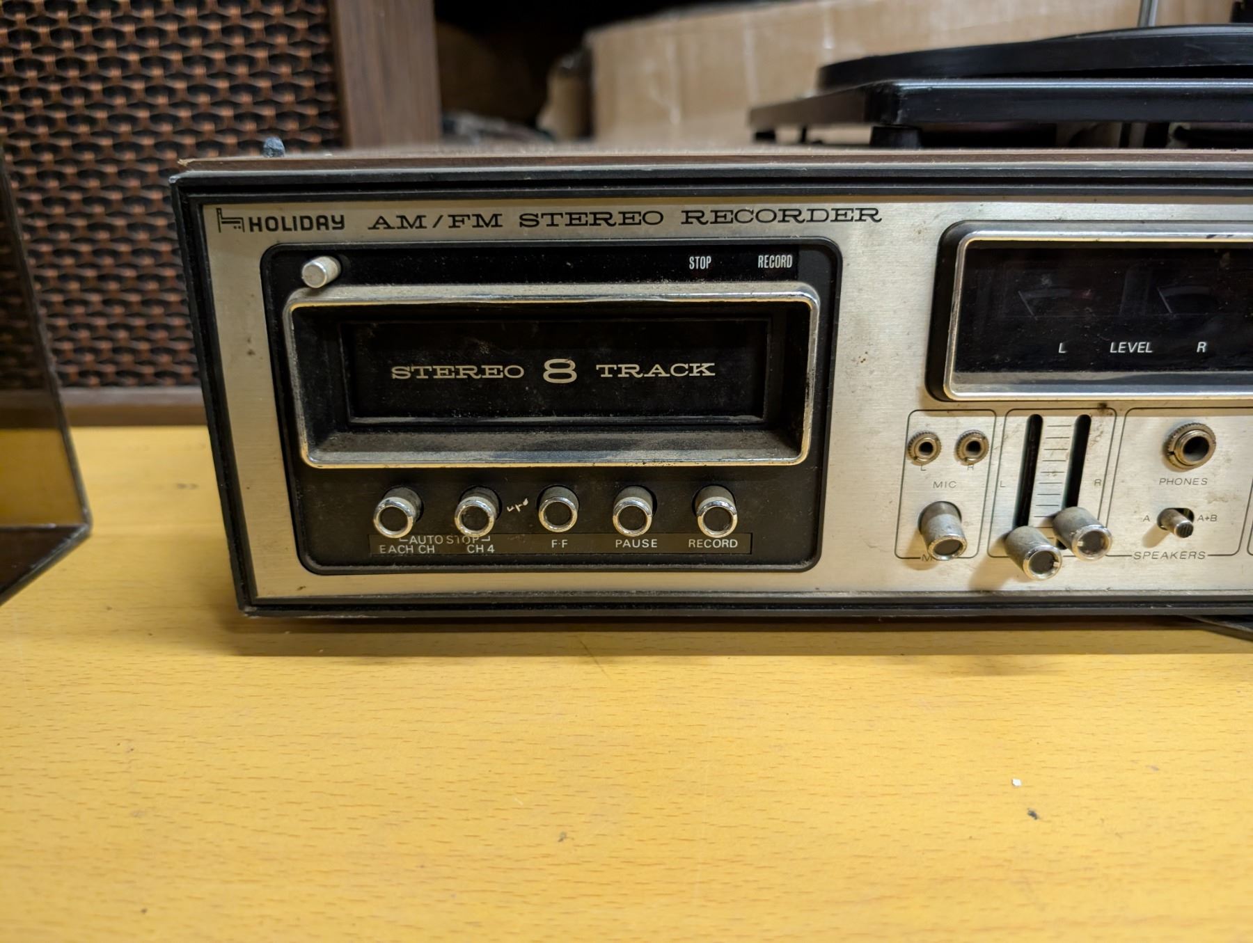 Holiday AM/FM Stereo Recorder (8-Track and Record Player w/ Speakers, Non Tested)