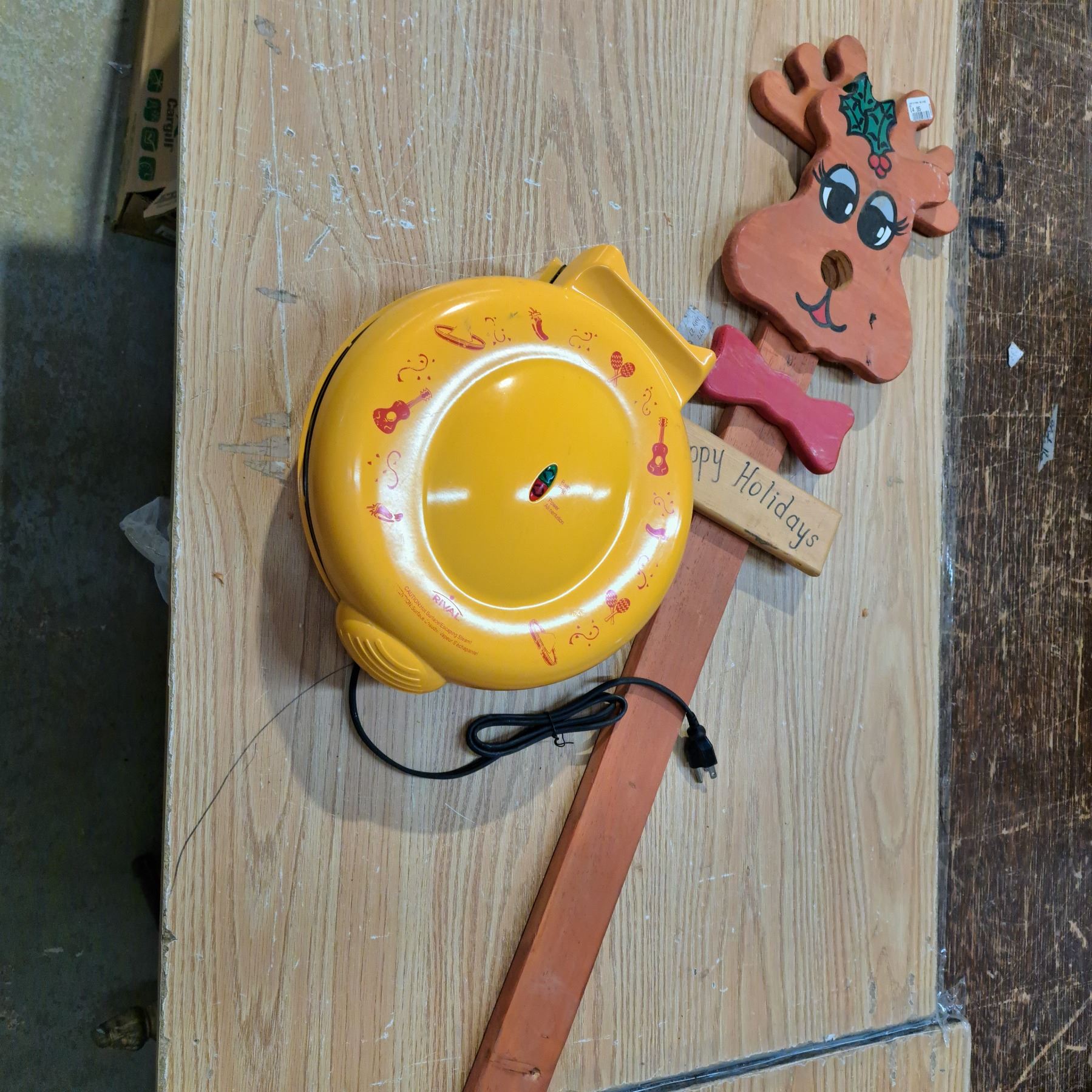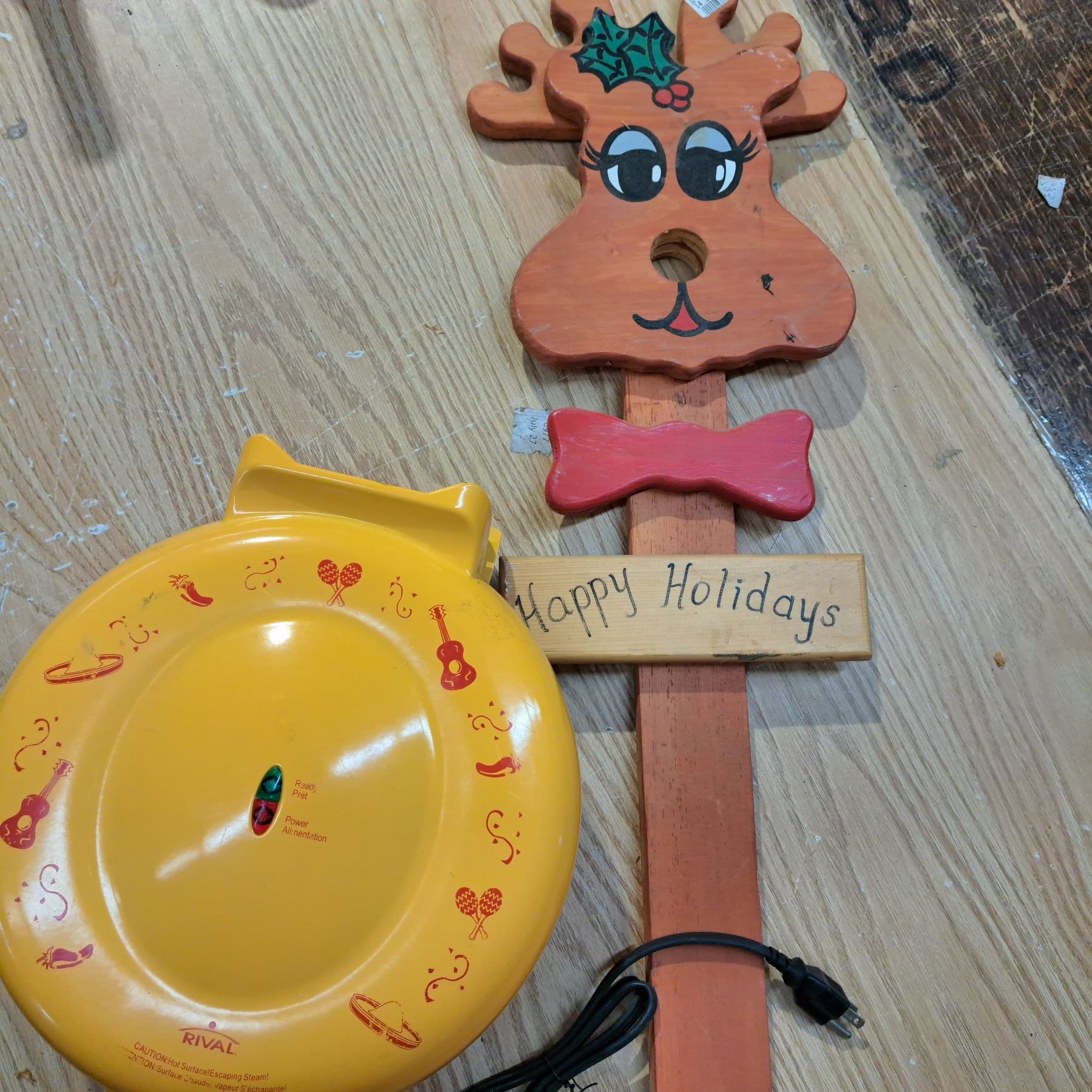Holiday wooden sign and grill press