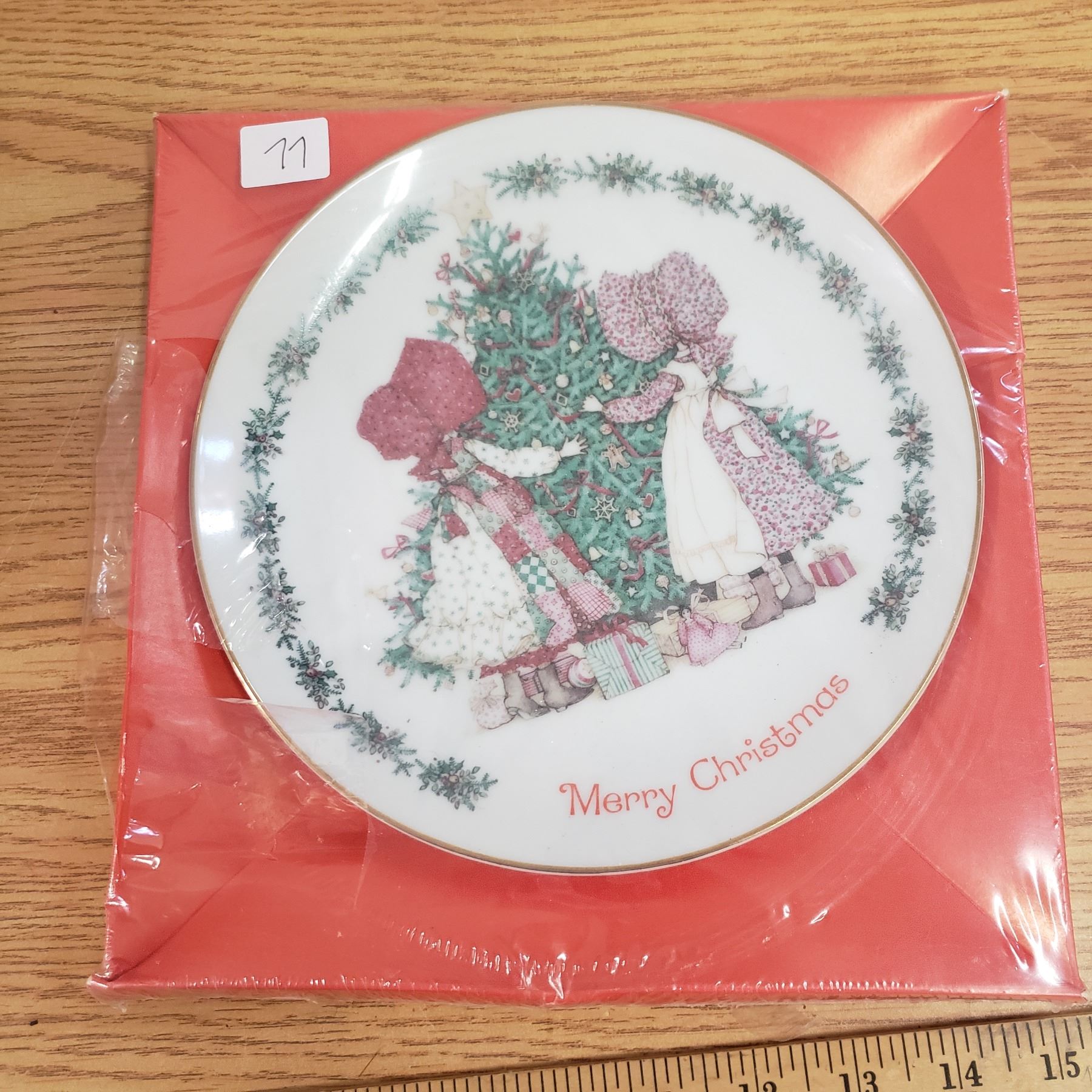 Holly hobbie Christmas plate 1980 unopenned Hobby (tear in plastic seal)