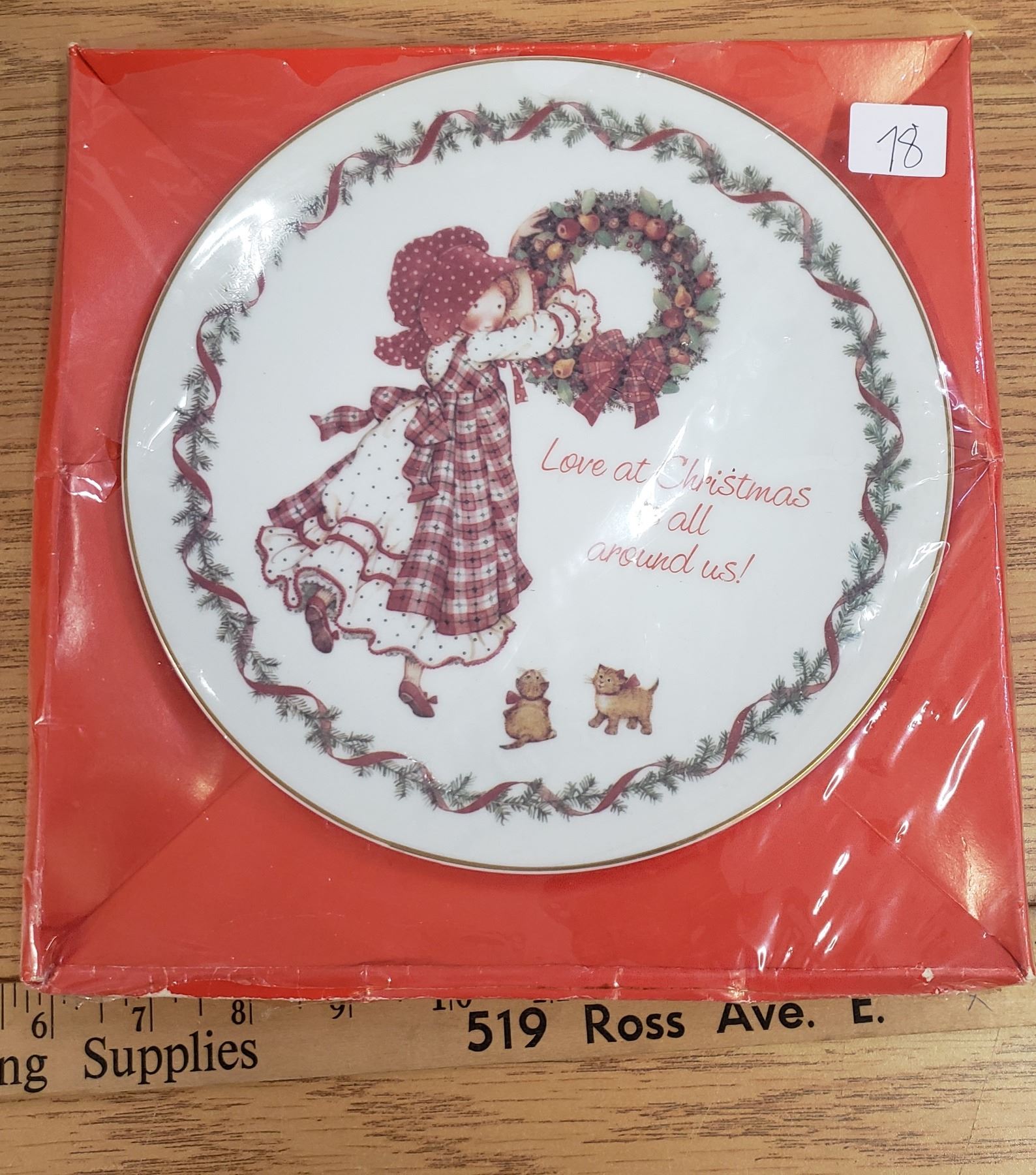 Holly hobbie Christmas plate 1981 unopened Hobby(tear in plastic seal)