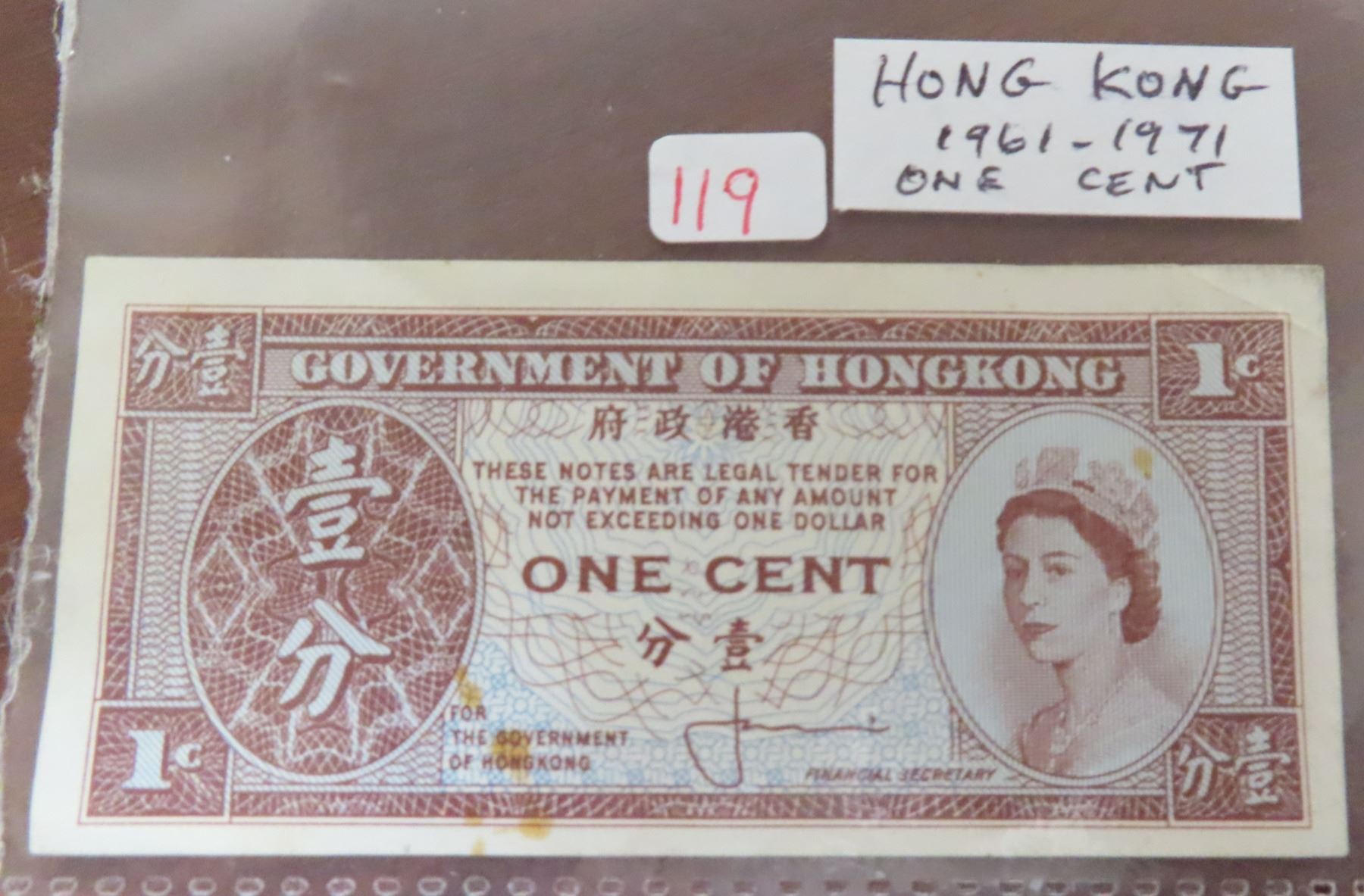 Hong Kong. 1961 – 1971 Government of Hong Kong 1 Cent. Depicts Queen Elizabeth. VF.