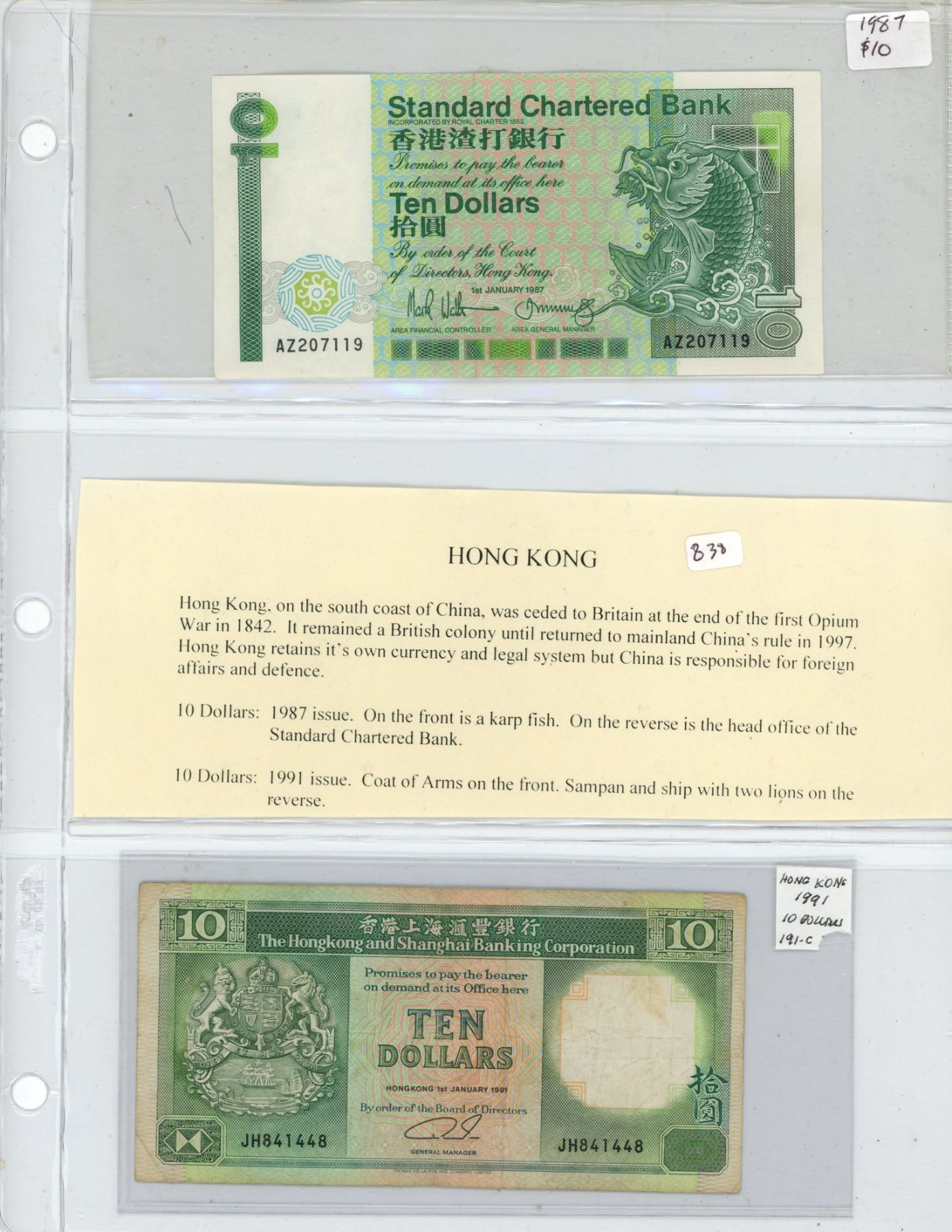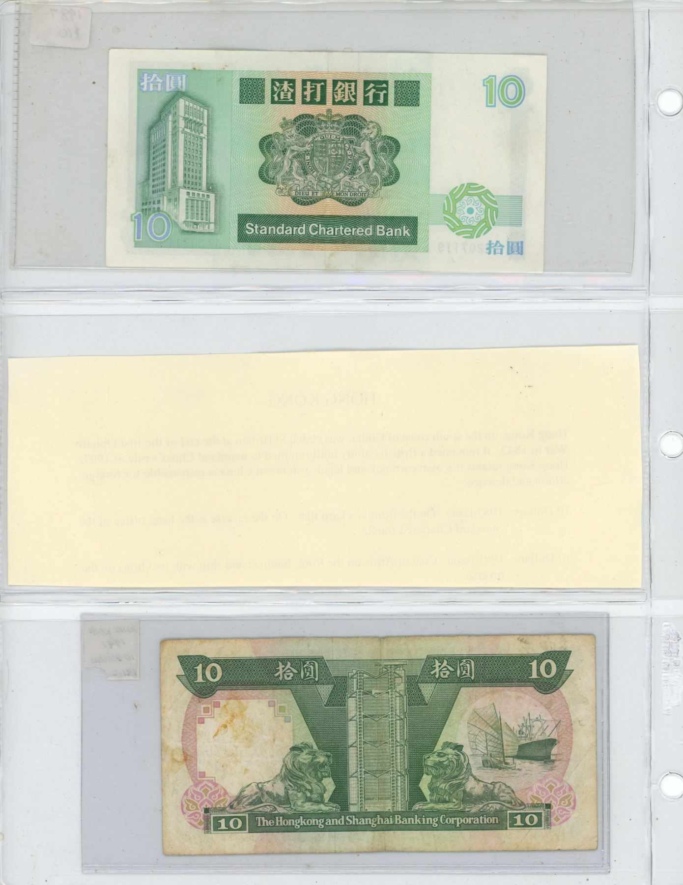 Hong Kong. Lot of 2: 1987 Standard Chartered Bank $10 VF+ and 1991 Hong Kong and Shanghai Banking Corporation $10 VF.