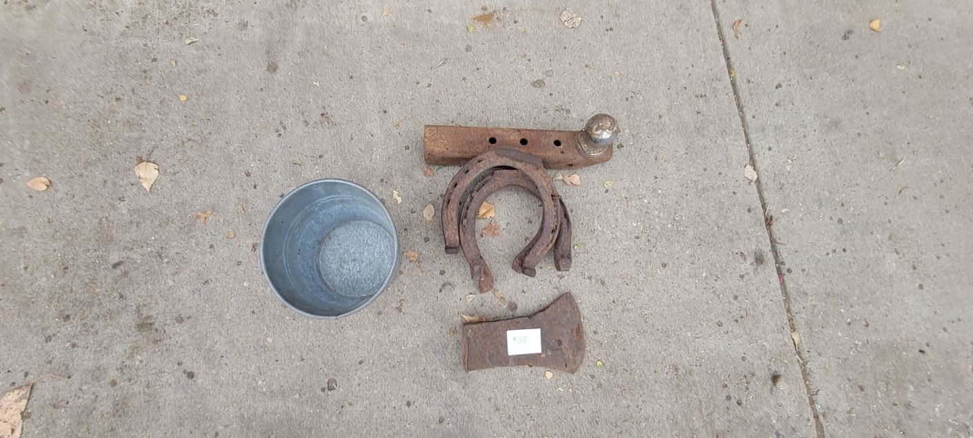 Horse Shoes, Ball Hitch 1 7/8", Axe Head, Galvanized Pail