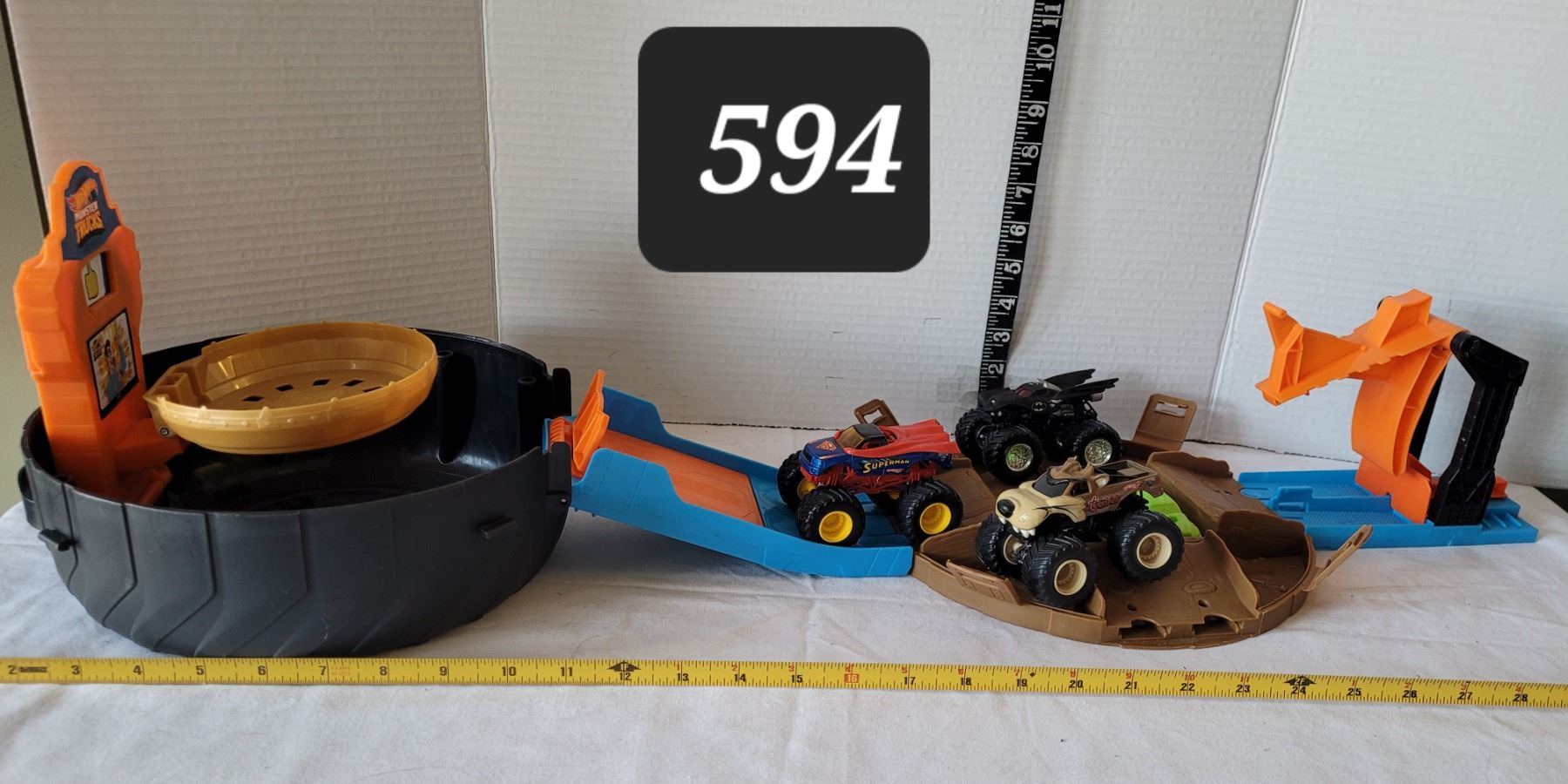 Hot wheels monster truck jump plus Taz, Batman & Superman monster trucks.