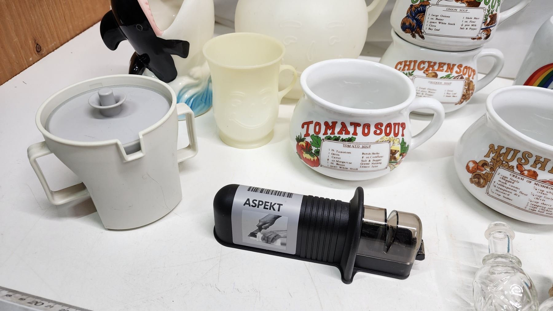 Household items - Soup mugs, Medicine Hat coffee cups, tupperware, etc.