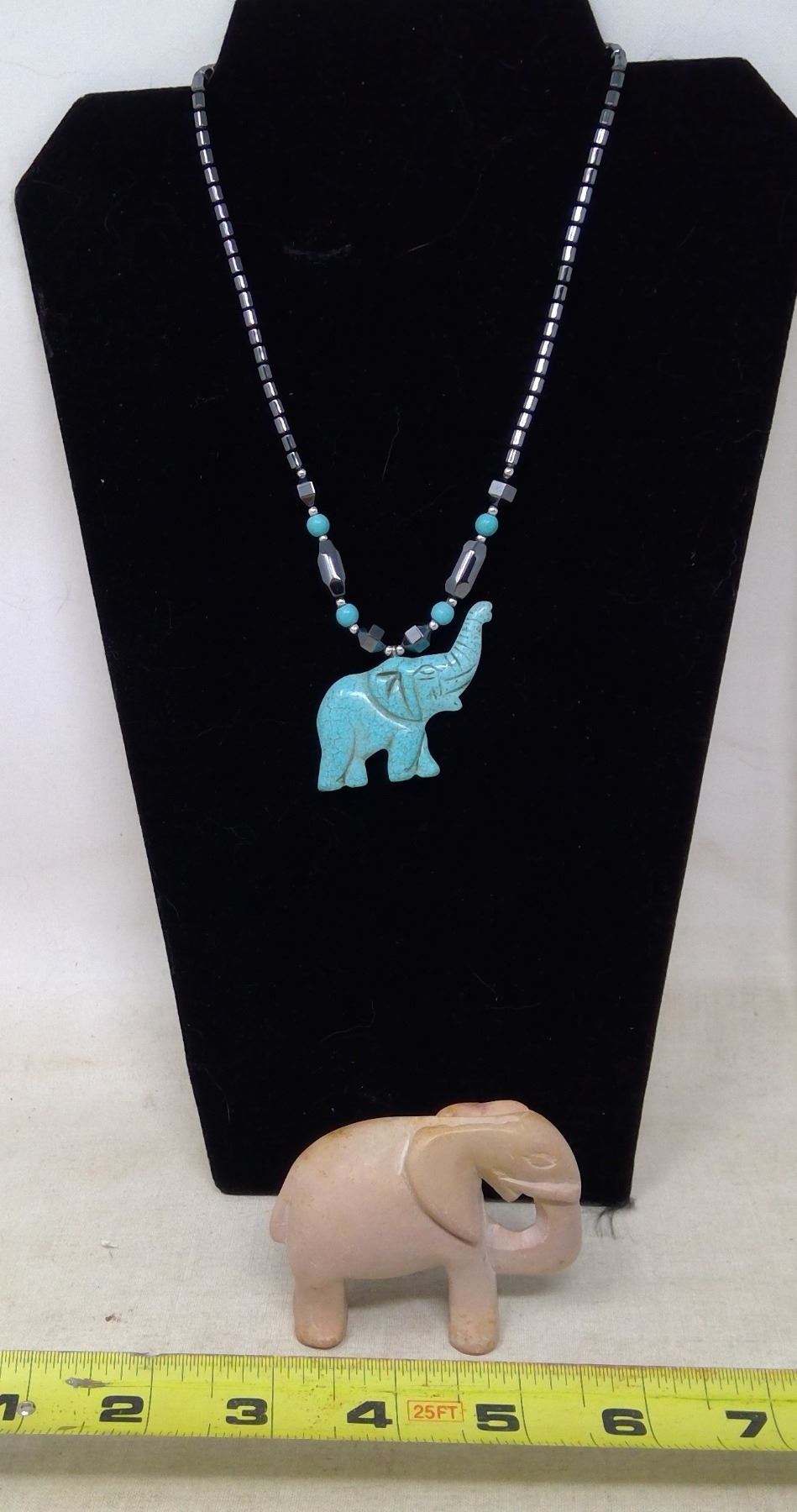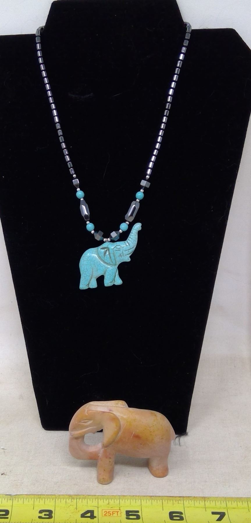 Howlite and Hematite Elephant Necklace and Soapstone