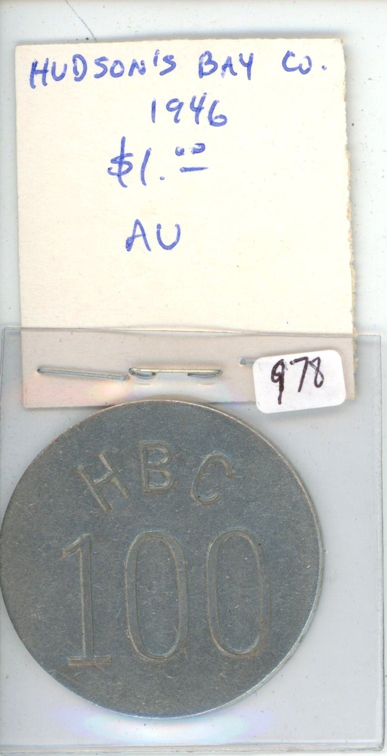 Hudson’s Bay Company 1946 $1 Eastern Arctic aluminum Token. Issued just after World War II to teach the Inuit about Canada’s Decimal System. Before this time, HBC tokens were issued in Made Beaver amounts. Since the Inuit didn’t trap many beavers, they needed different tokens. Issued in 1946 and used until about 1962. AU.