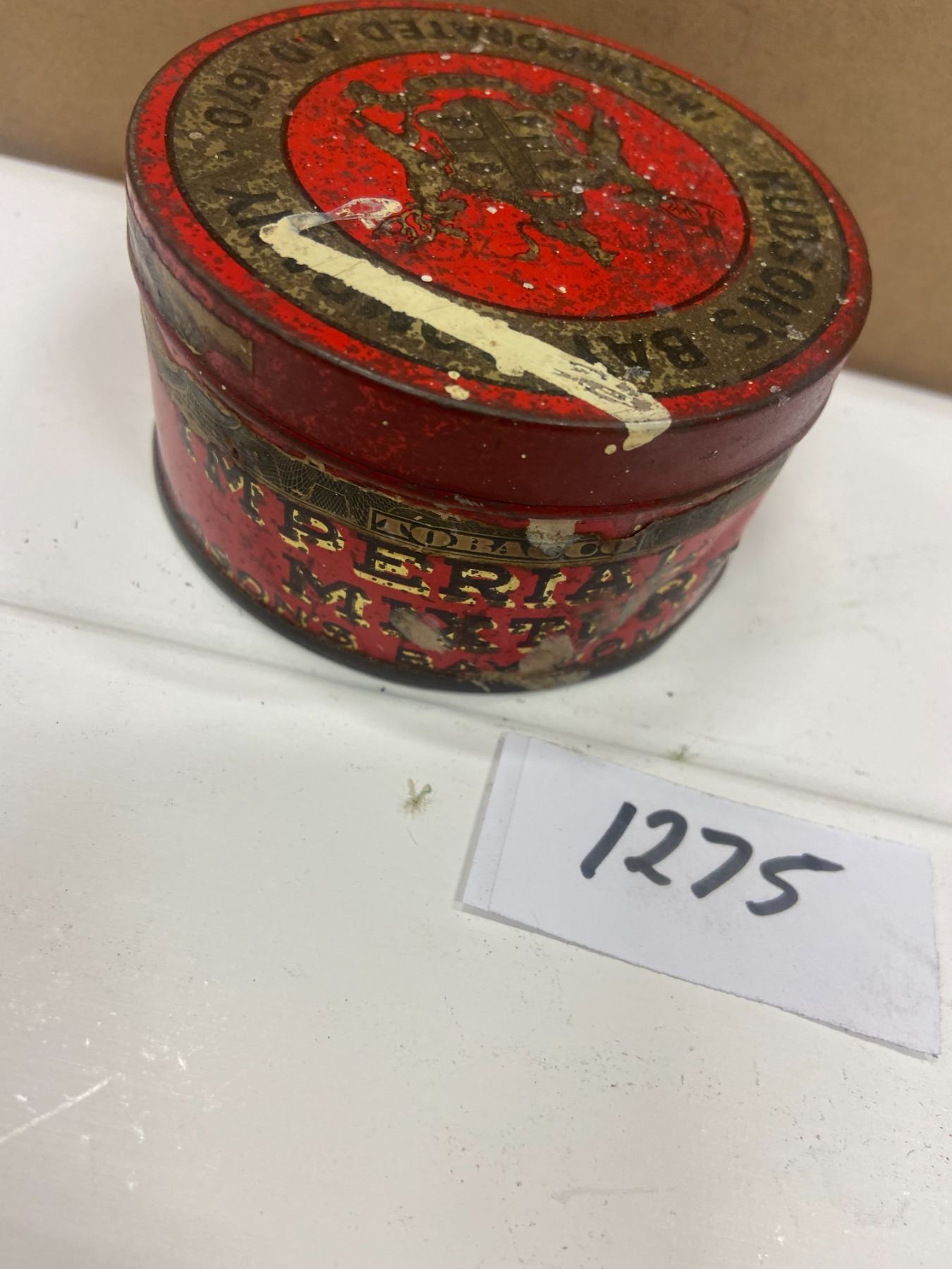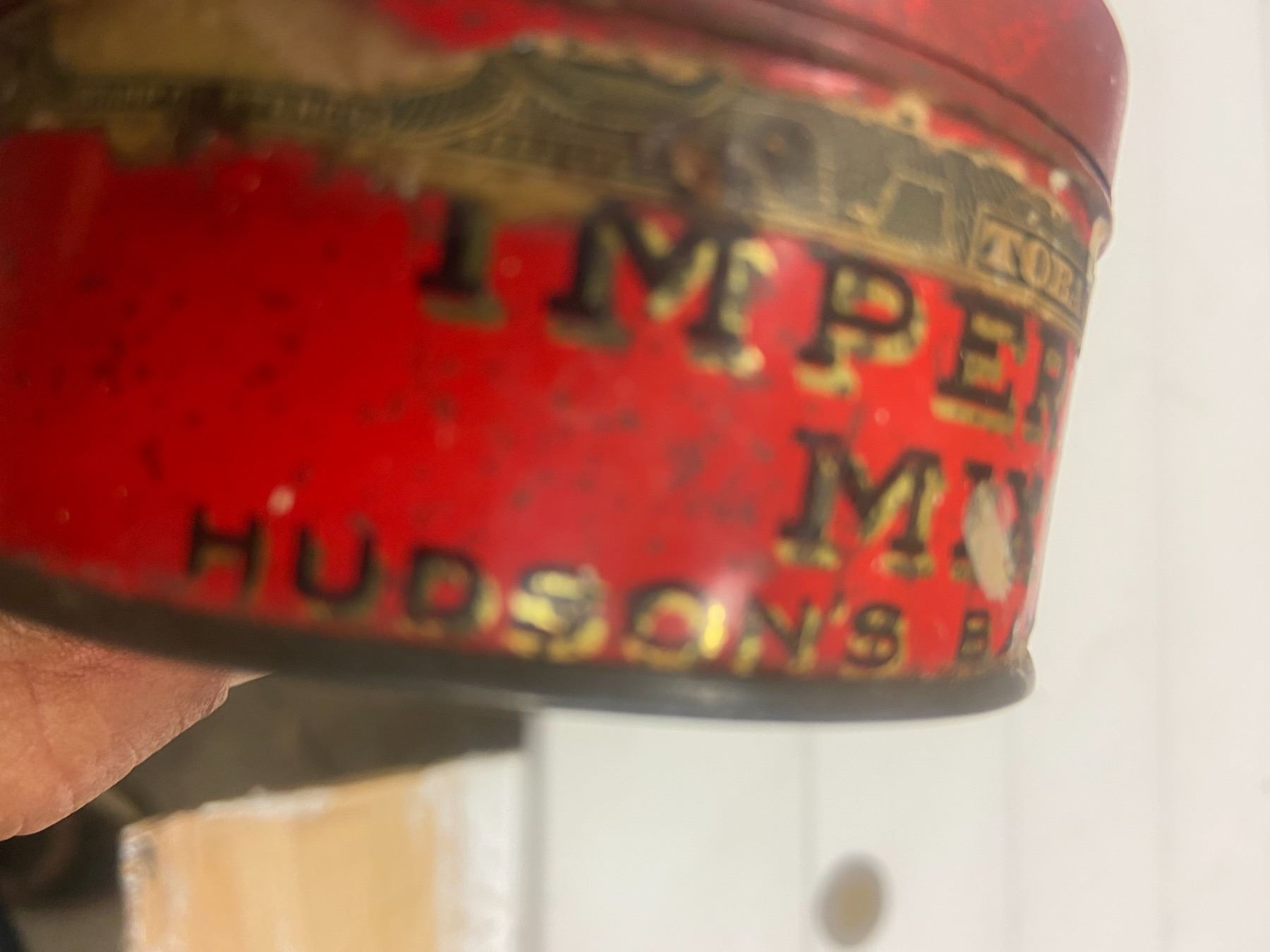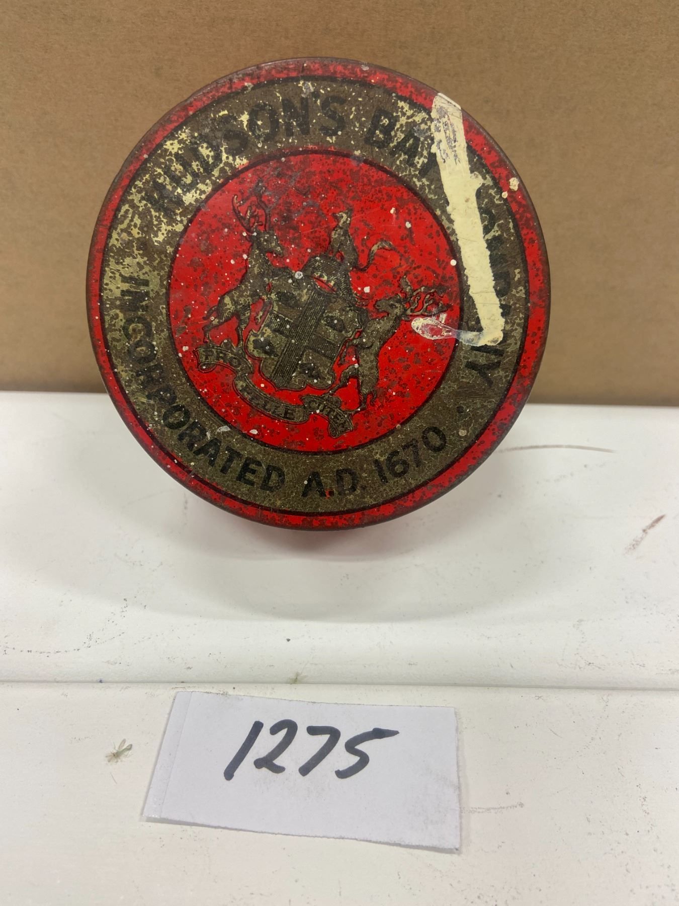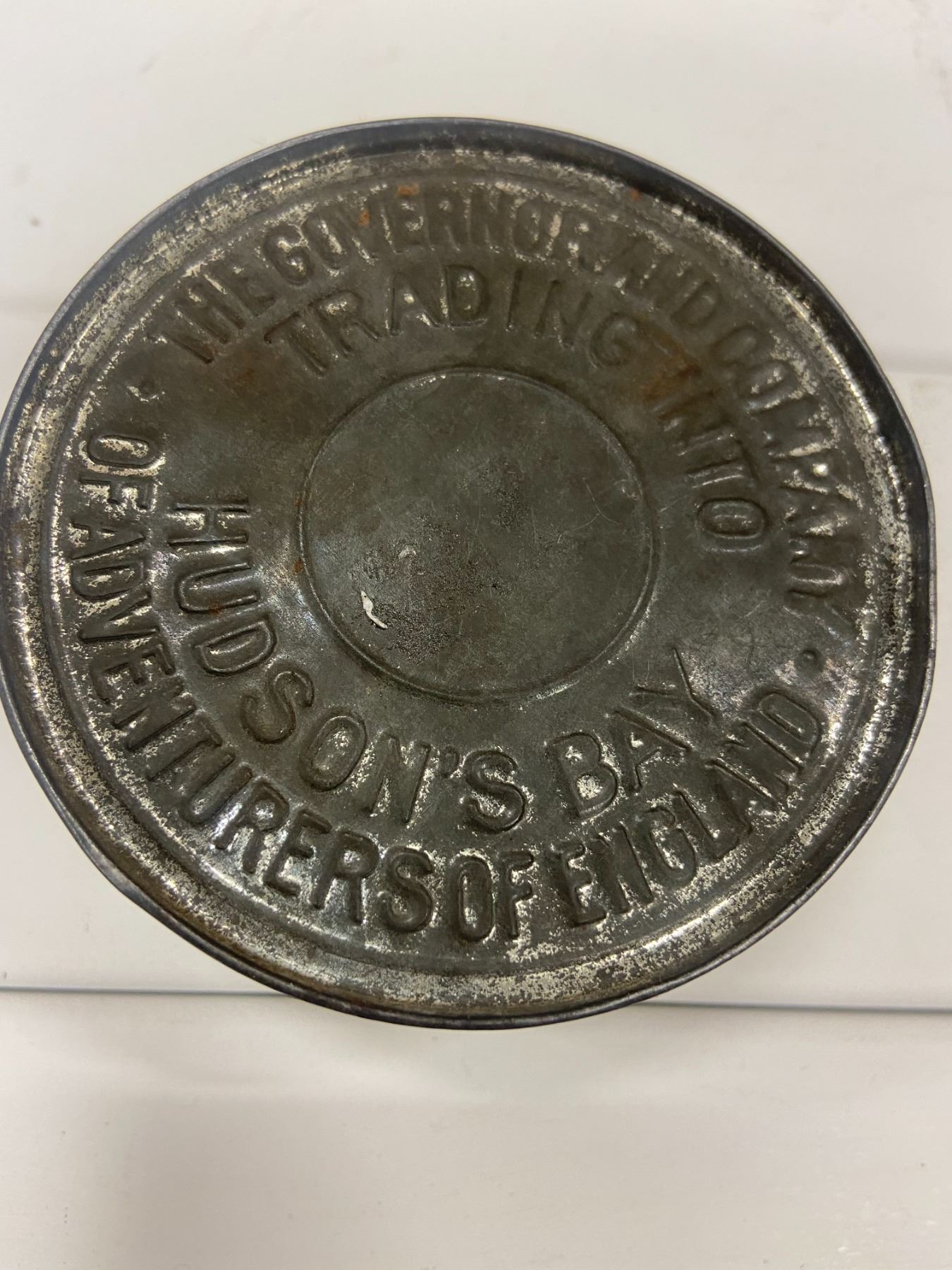 Hudson's bay tobacco tin - rare. As found condition - 3.5"across 1.75" tall