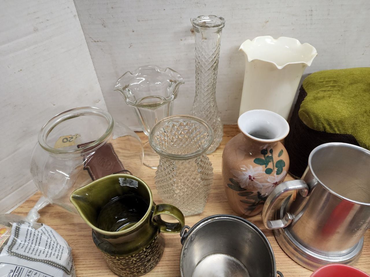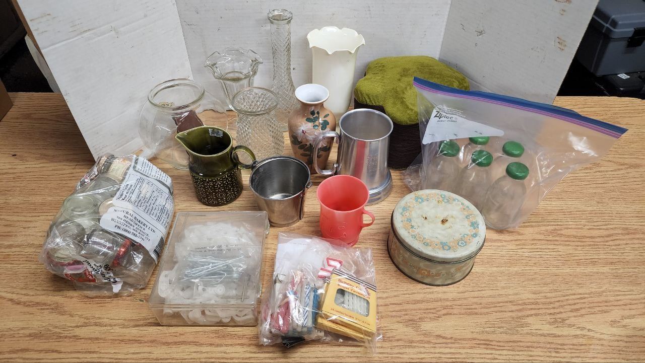 Huge Lot of Assorted Glass Vases, Jars, etc