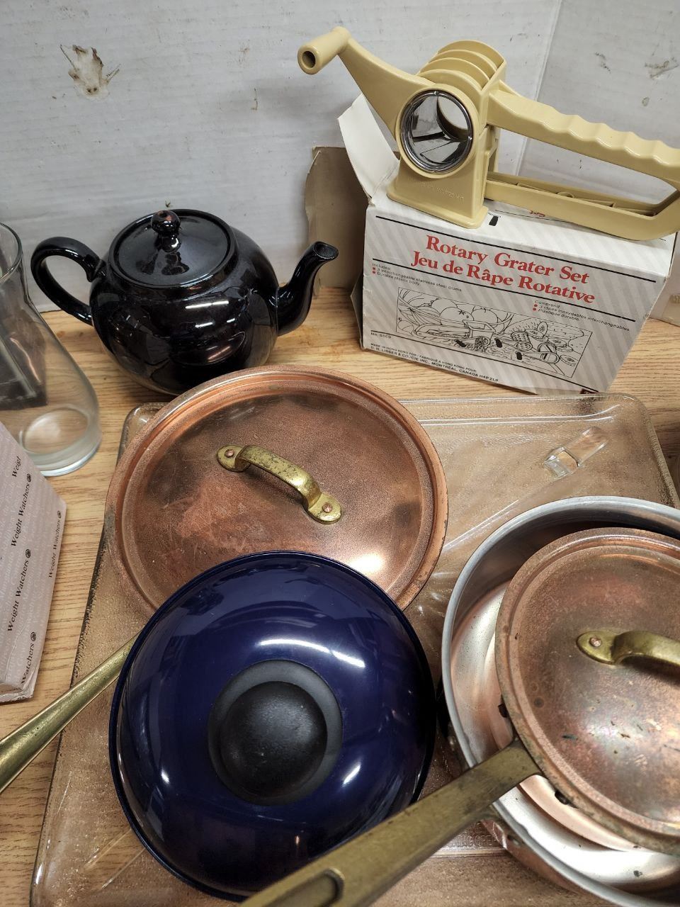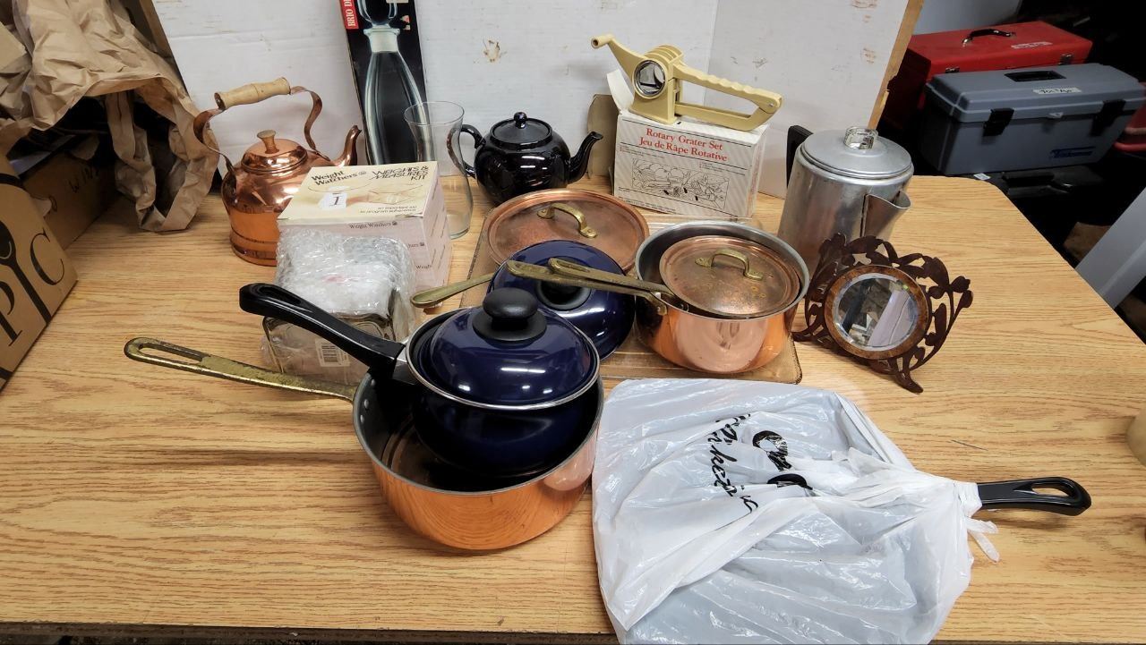 Huge Lot of Assorted Kitchen and Household Items, Pots, Kettles, etc