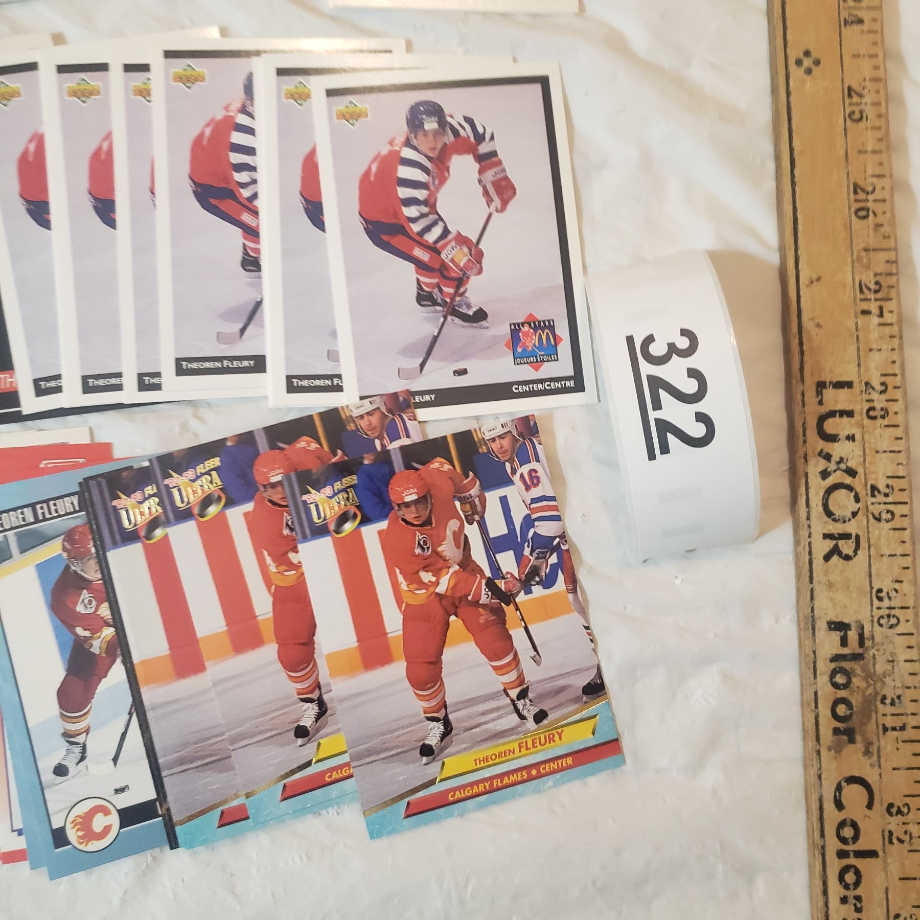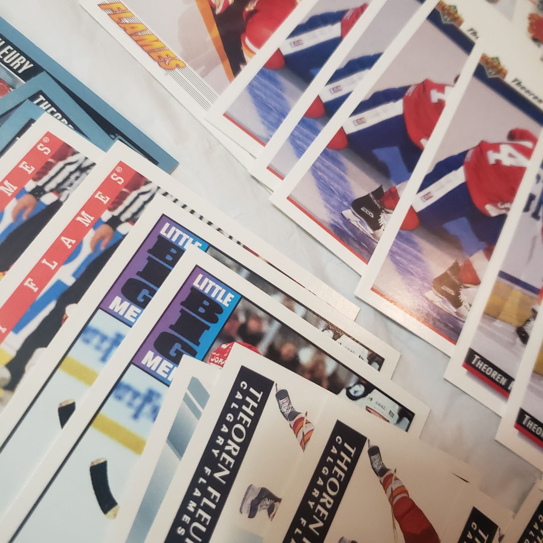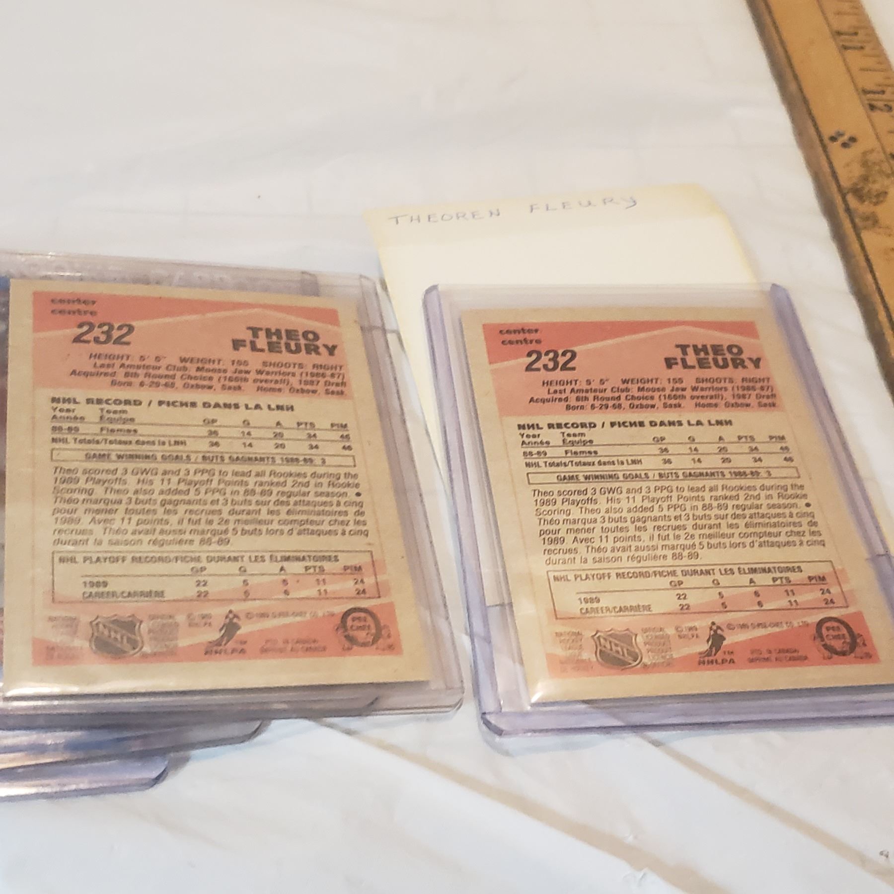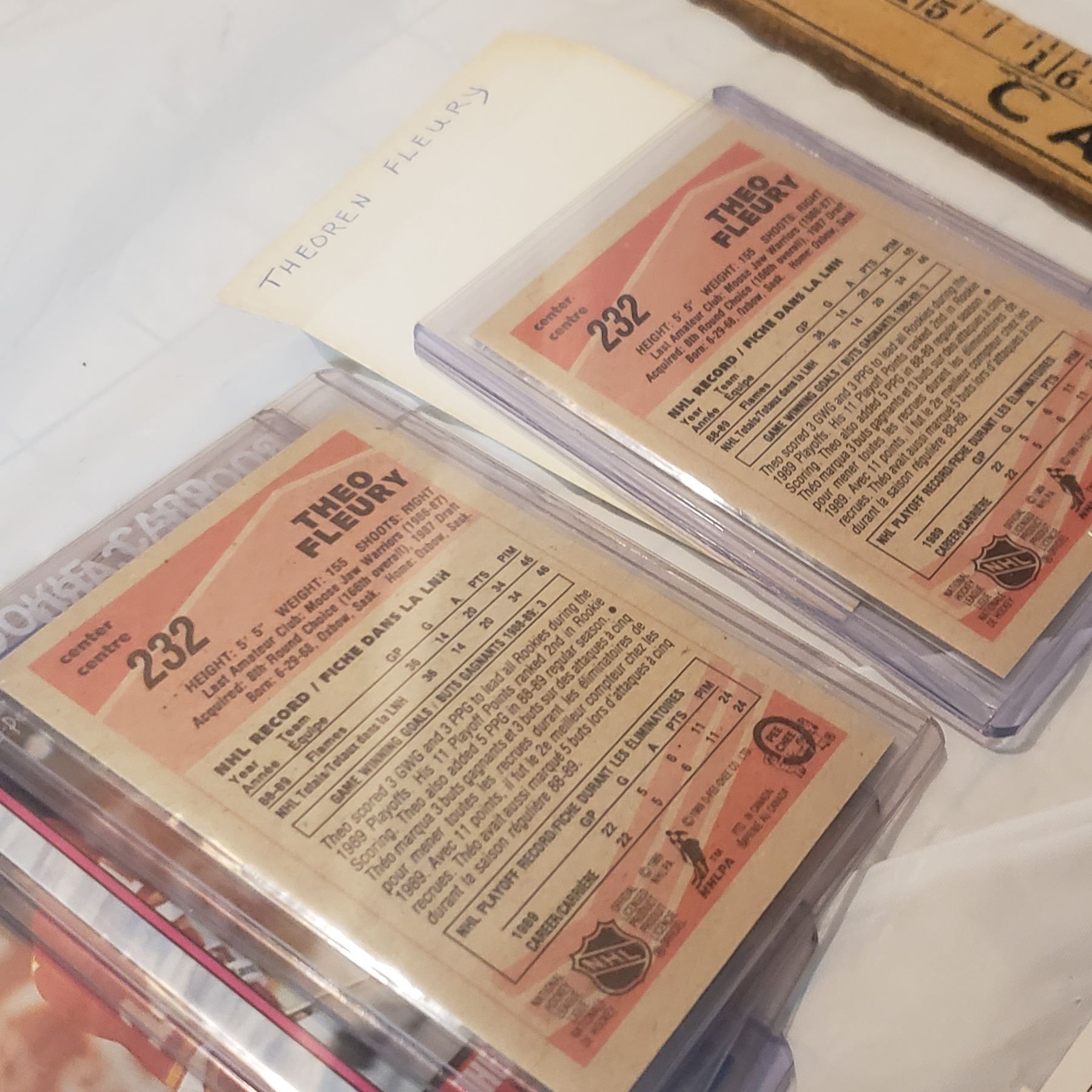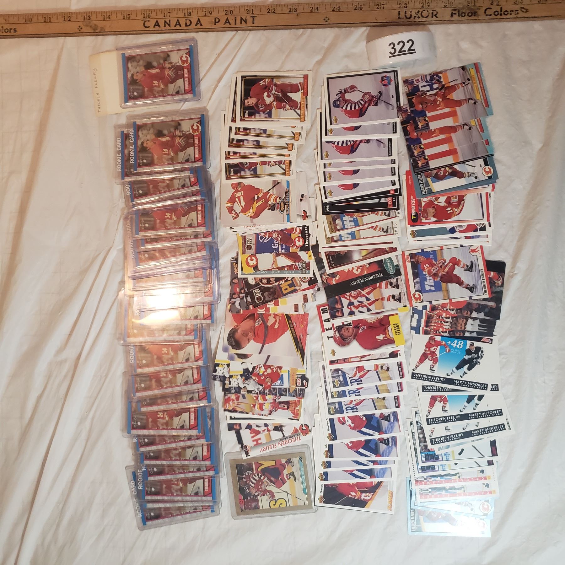 Huge Theoren Fleury lot inlcudes 26 rookie cards already in top loaders hockey trading card collector lot