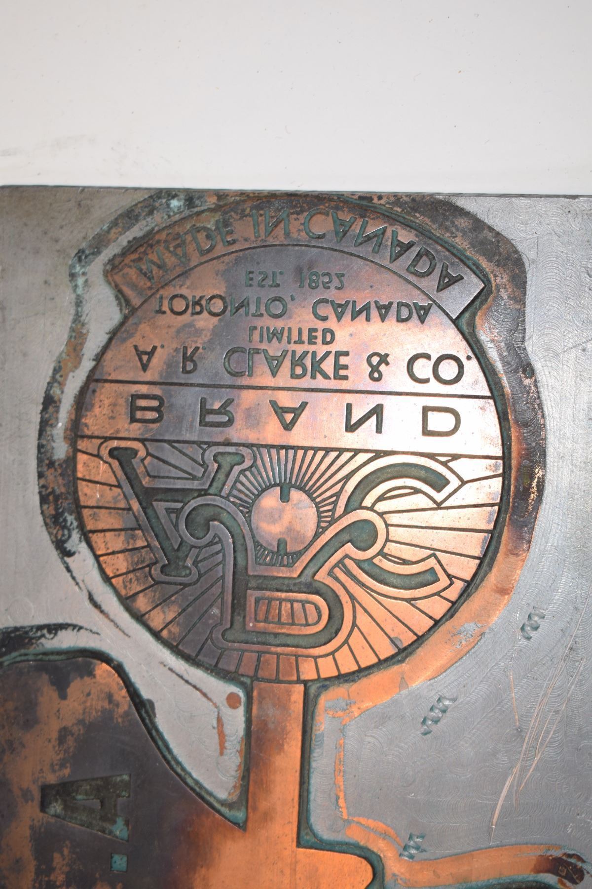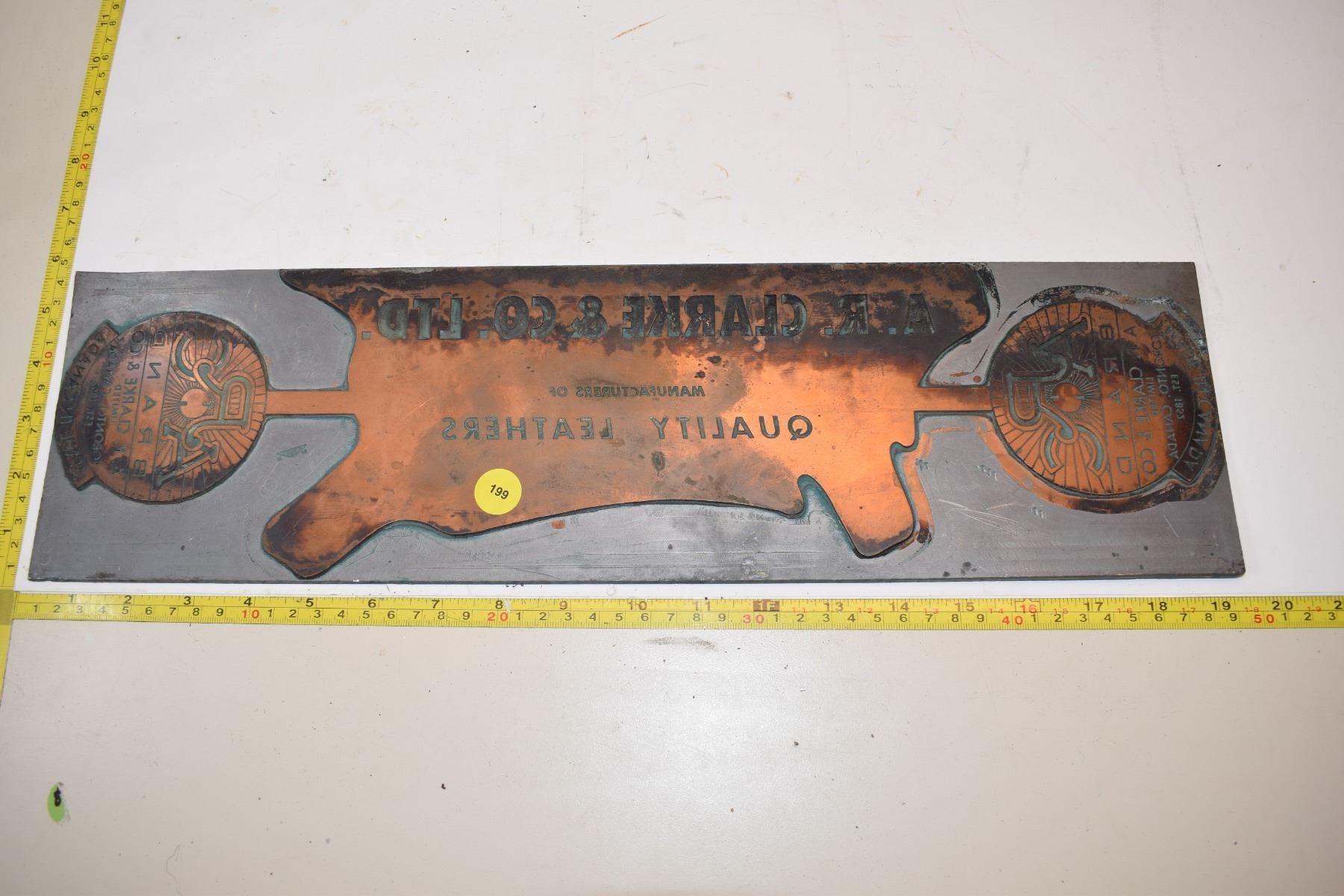 Huge brass printing press stamp - leather