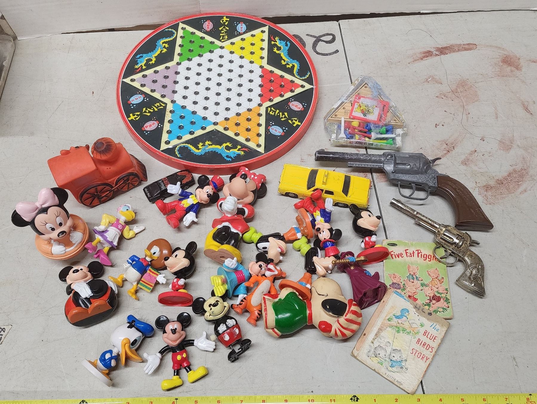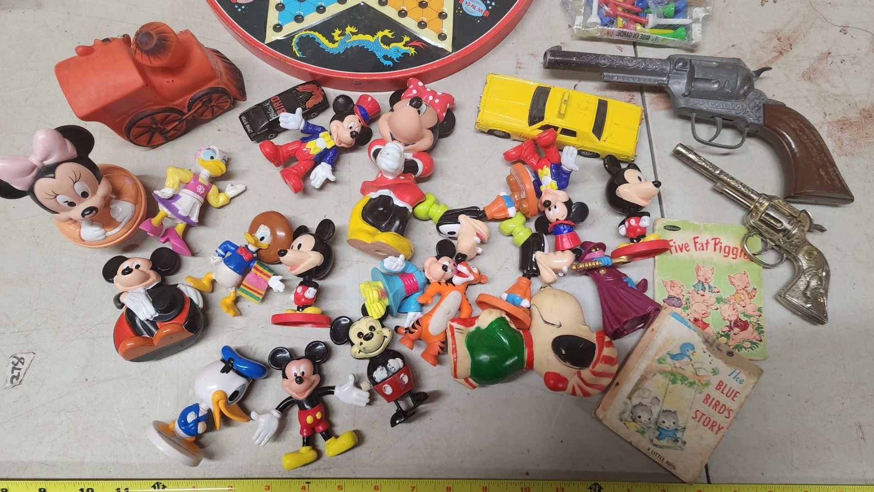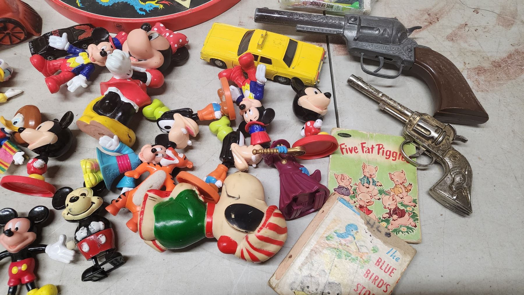 Huge lot of assorted Disney toys, toy cars, toy guns, game boards & tiny books