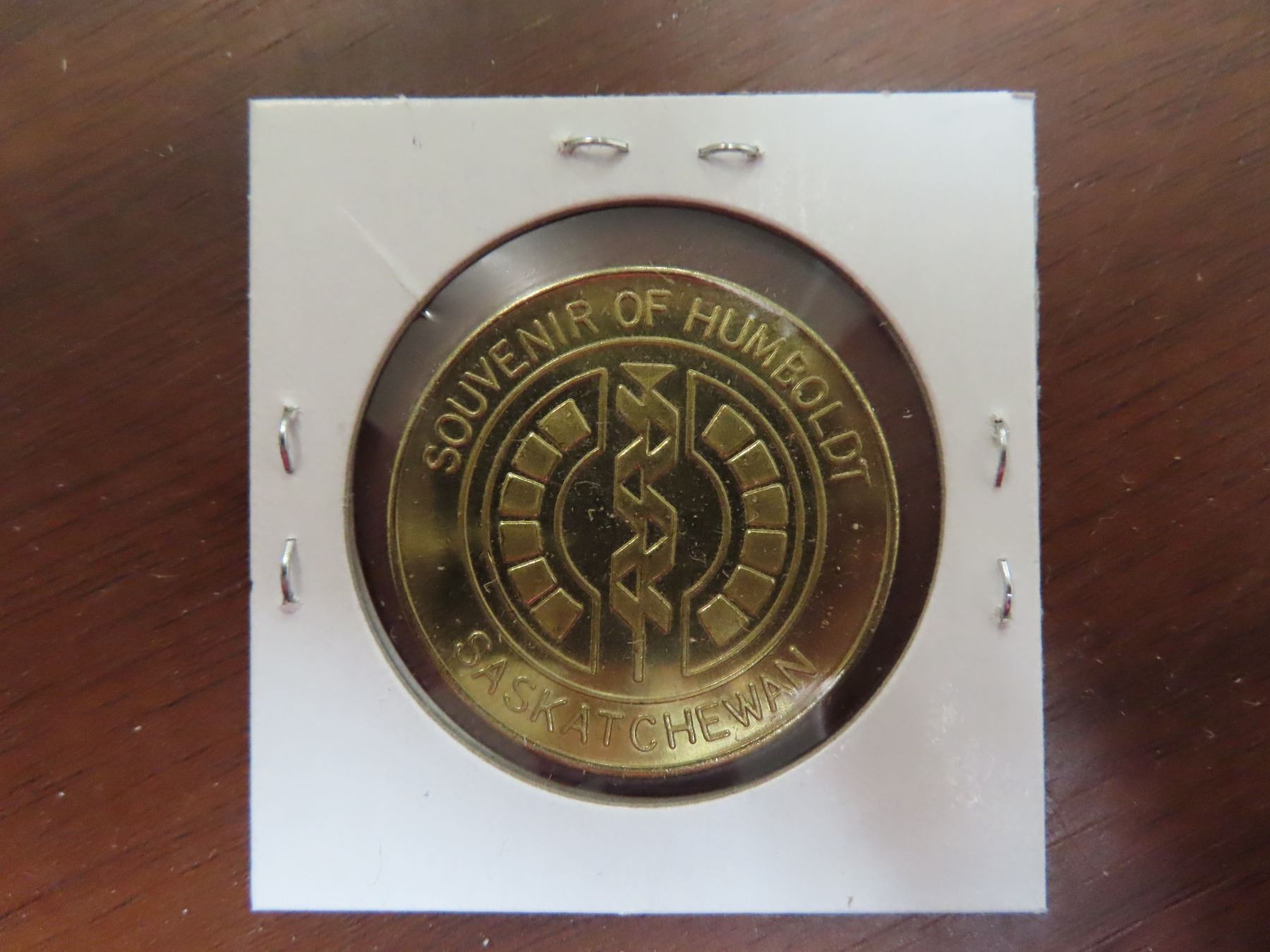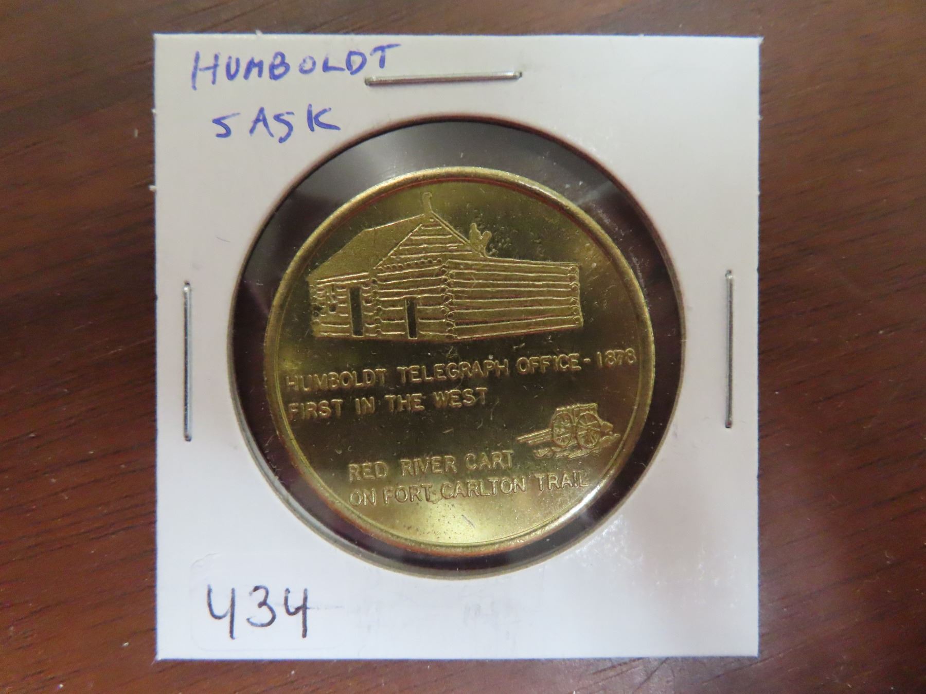 Humboldt, Saskatchewan brass medal. Humboldt Telegraph Office 1878, the first in the West. BU.