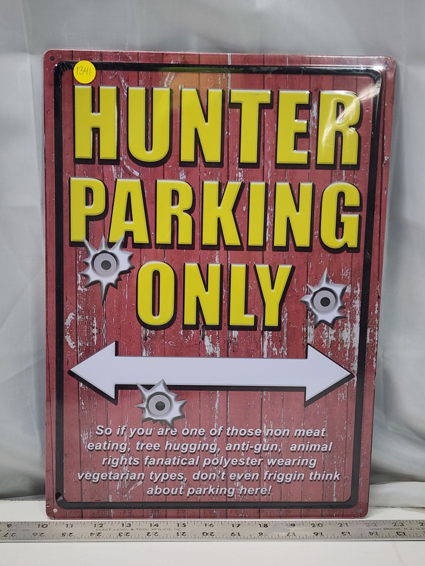 "Hunter parking" tin sign, sealed in plastic - 12"x17"