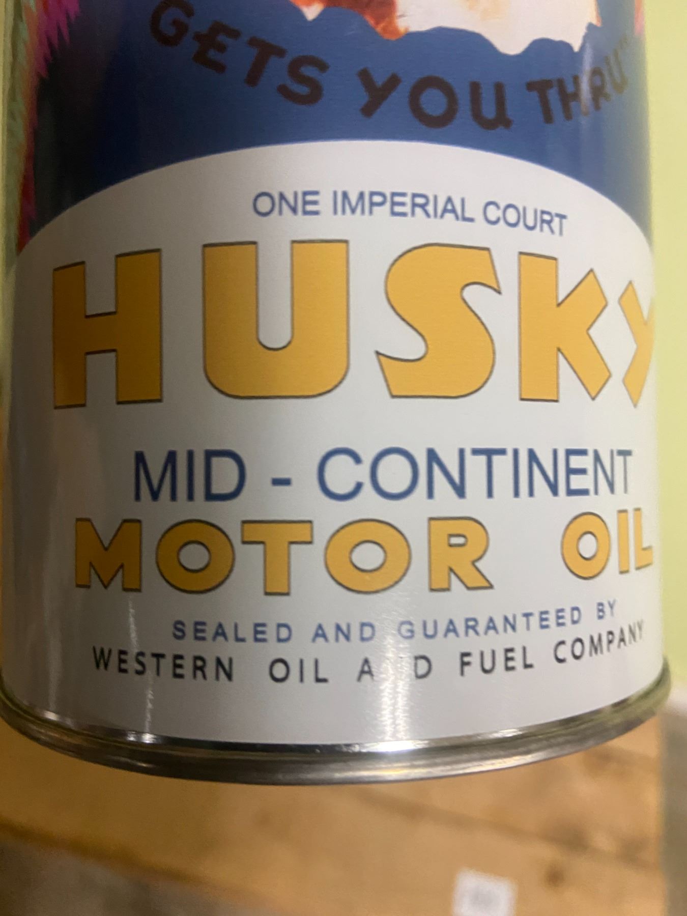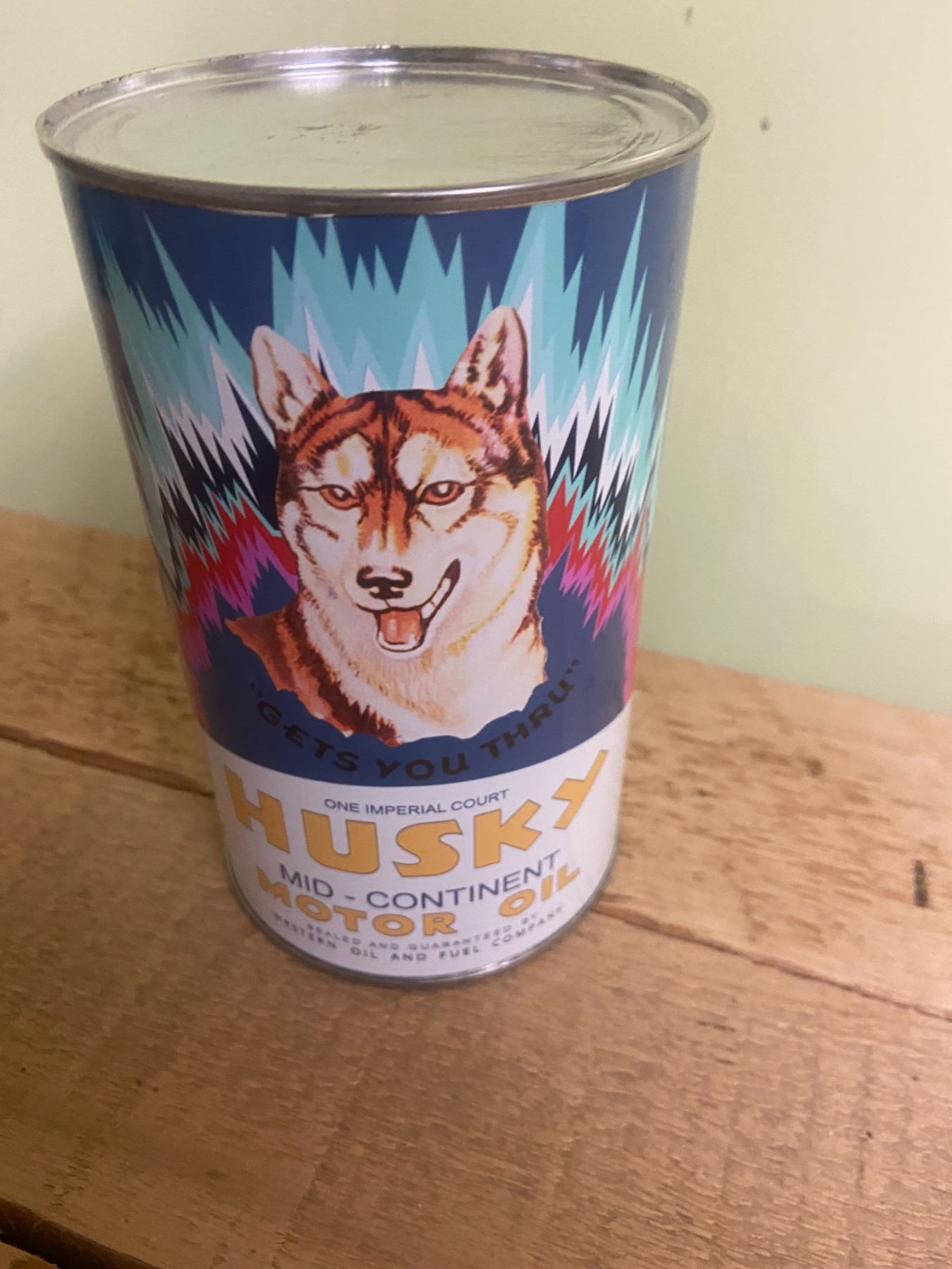 Husky motor oil tin *Reproduction* Re-wrap, new