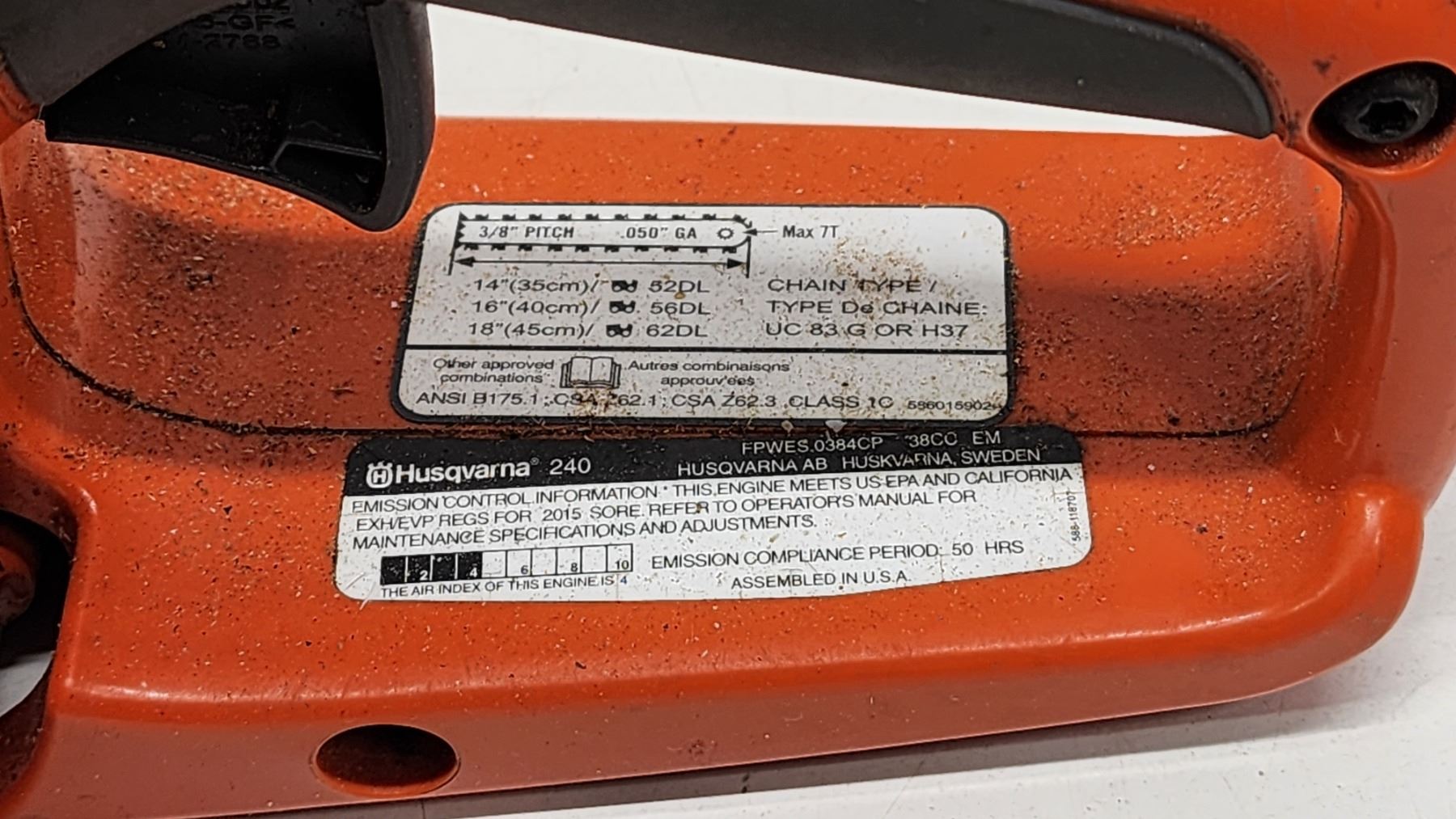 "Husqvarna" 240 gas powered, chain saw - told it works