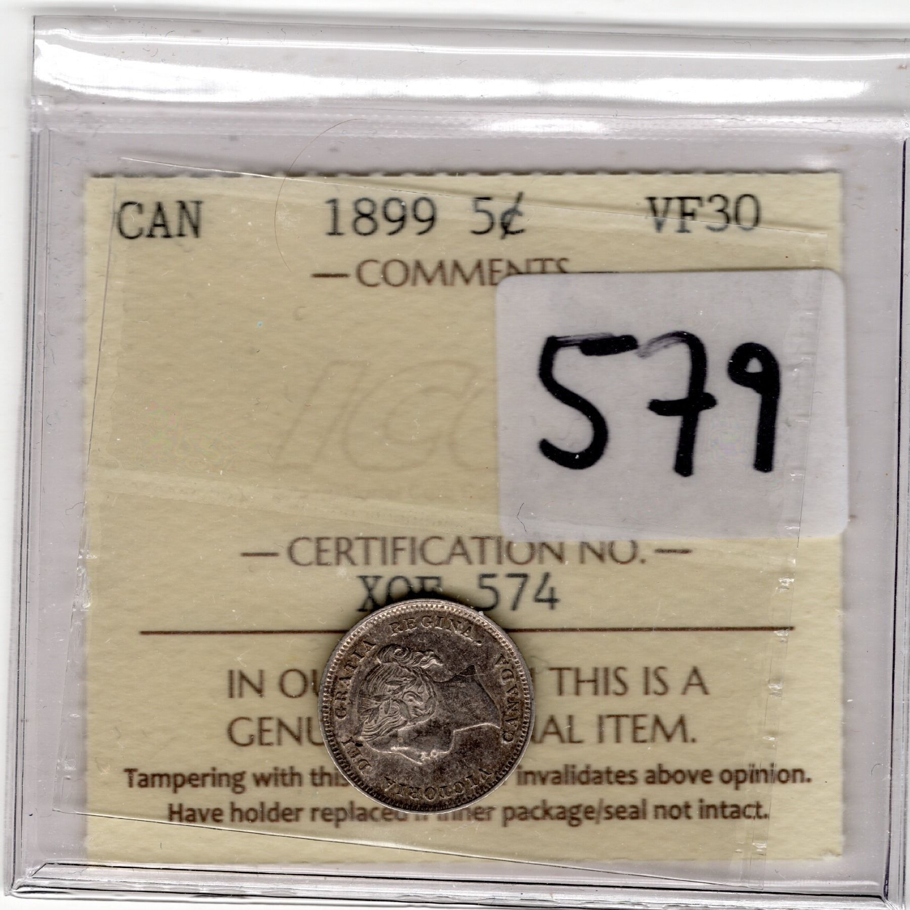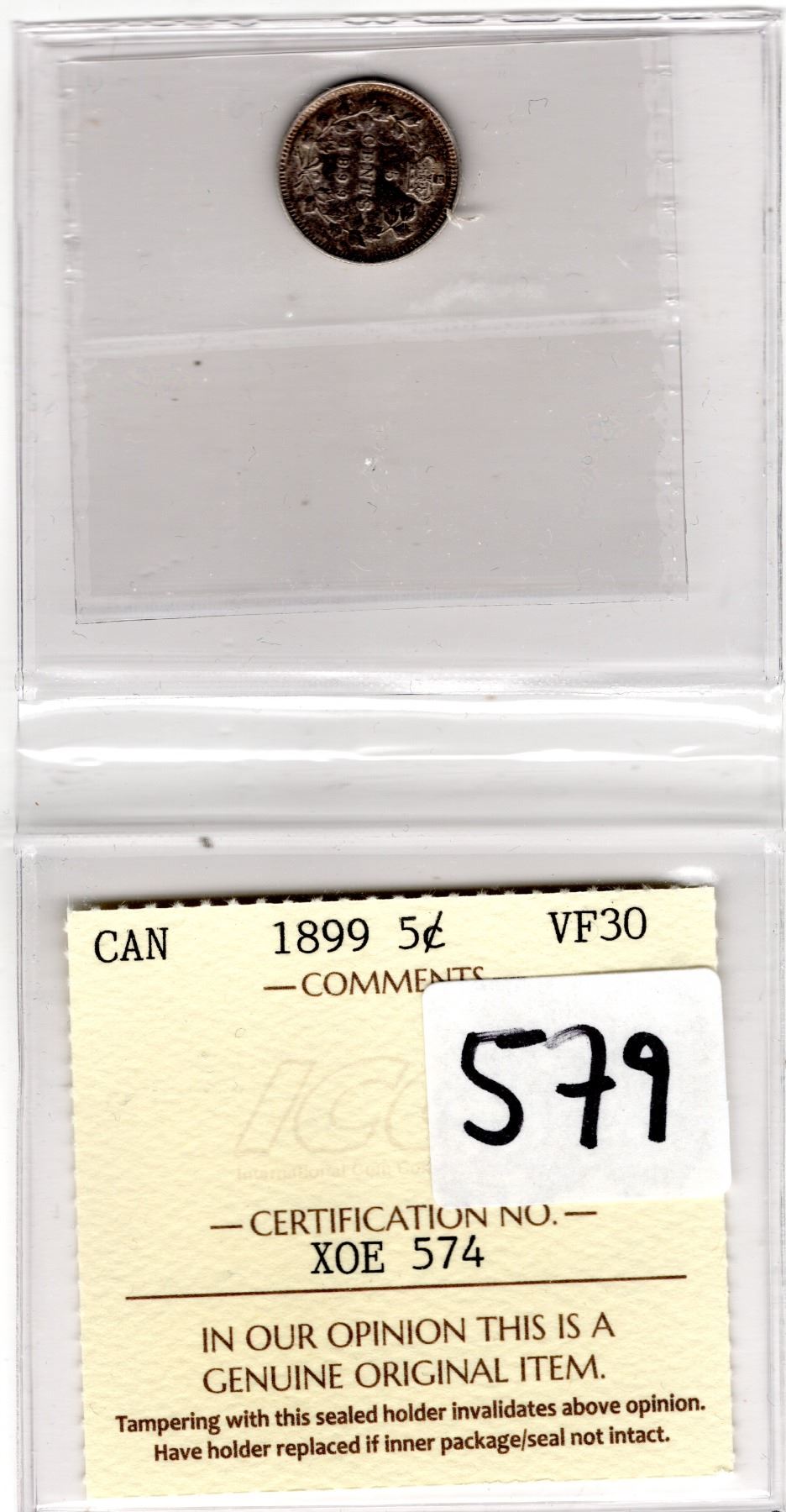 ICCS 1899 FIVE CENT VF-30