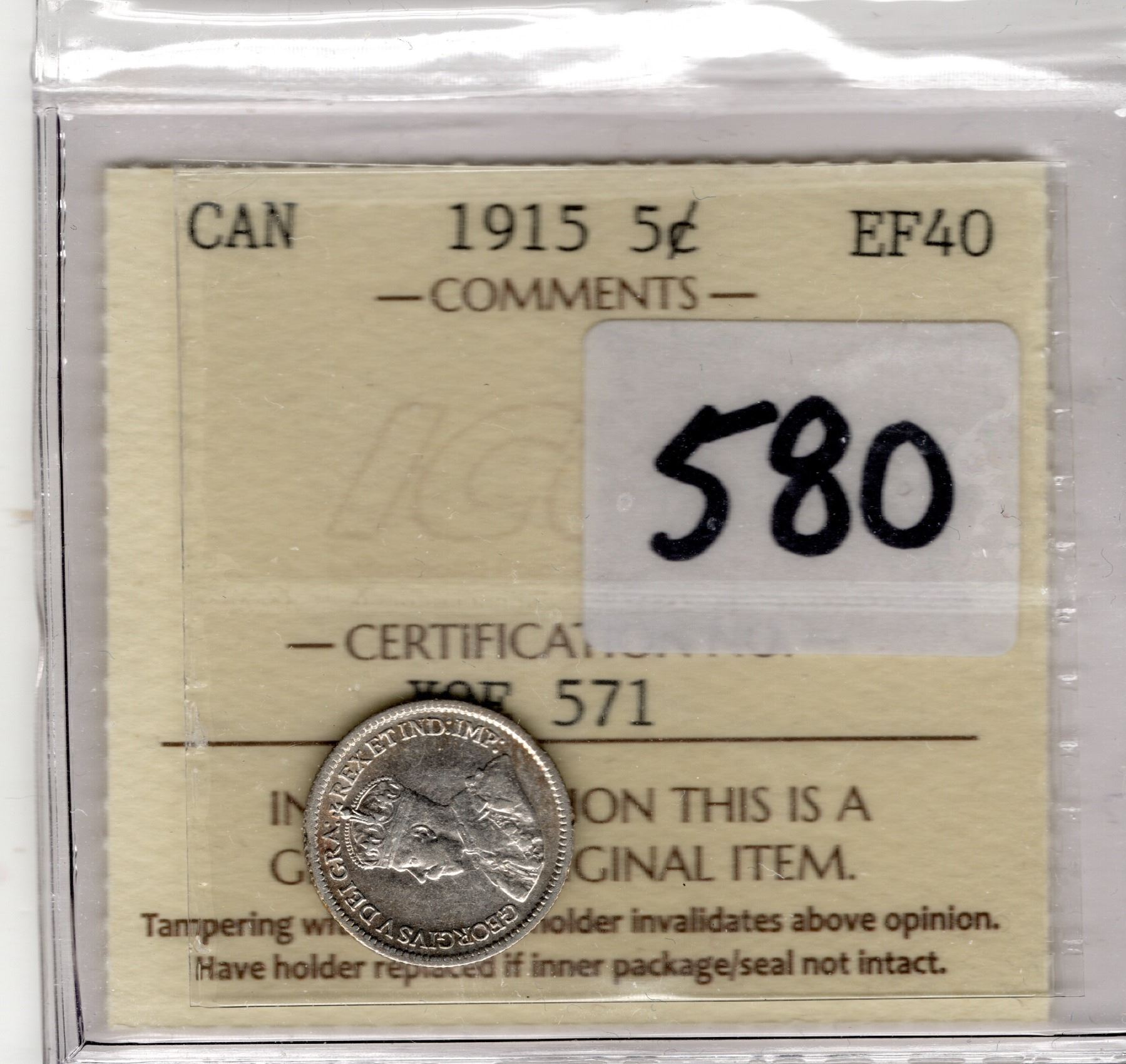 ICCS 1915 FIVE CENT EF-40