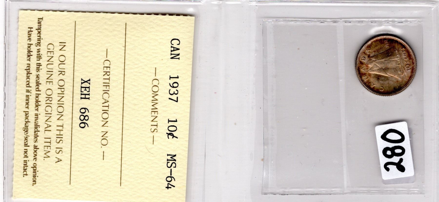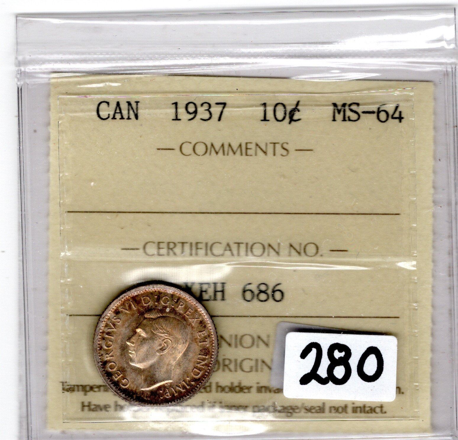 ICCS CERTIFIED 1937 MS 64 TEN CENTS