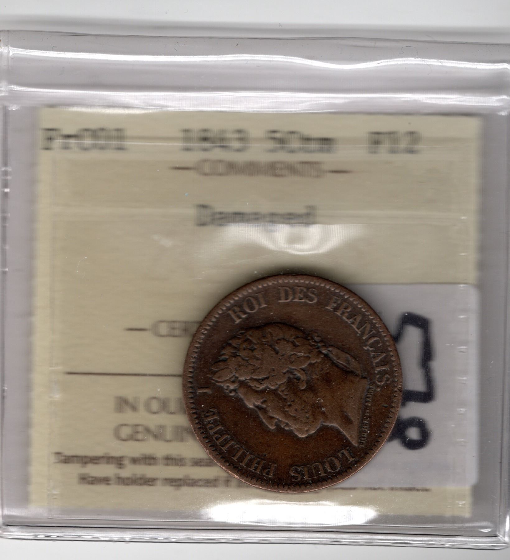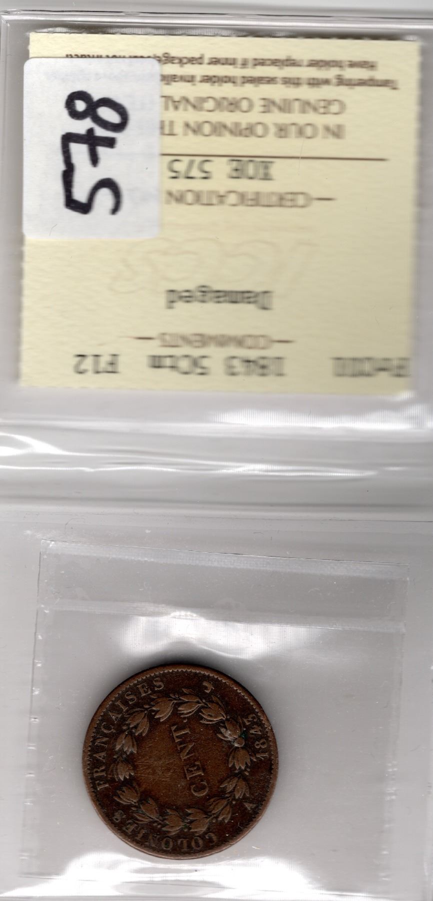 ICCS FRENCH COLONIES 1843 50 CTM AS SHOWN
