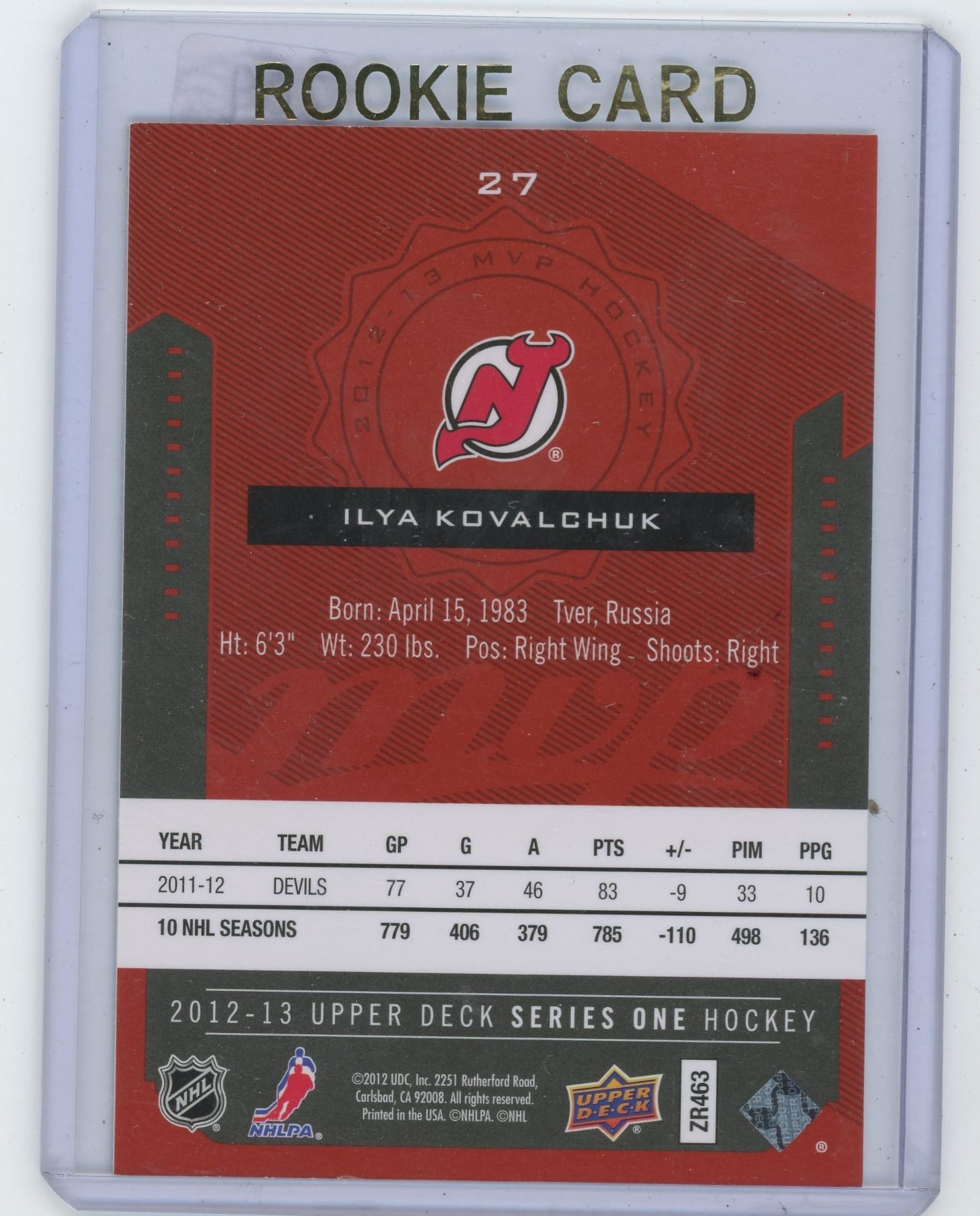 ILYA KOVALCHUK, MVP, NEW JERSEY DEVILS, NHL HOCKEY CARD. PRIDE OF CANADA. 2017 UPPER DECK. GEM UNC