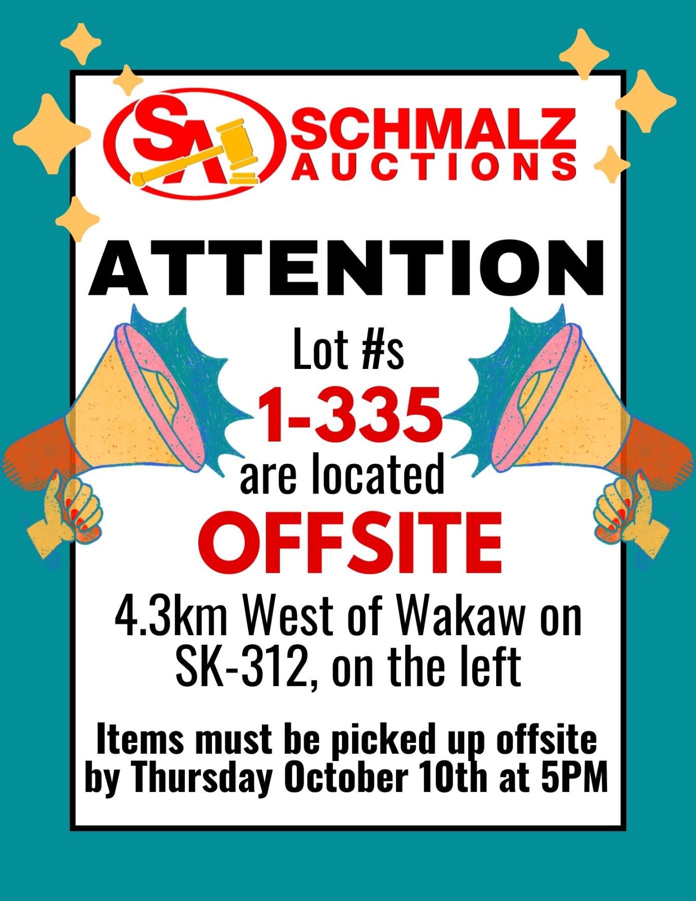 Lots 1-333 are located offsite, 4.3km West of Wakaw on SK-312, located on the left - Google Maps Pin: https://maps.app.goo.gl/iHWYM6N1LX8zyX6q8