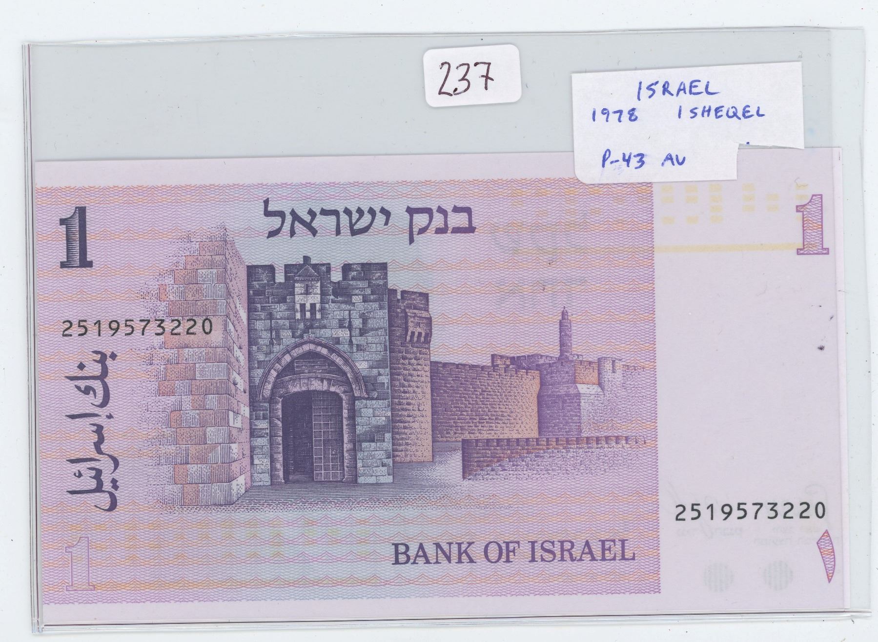 ISRAEL. 1978 1 SHEQEL. JERUSALEM GATE. P-43. AU.