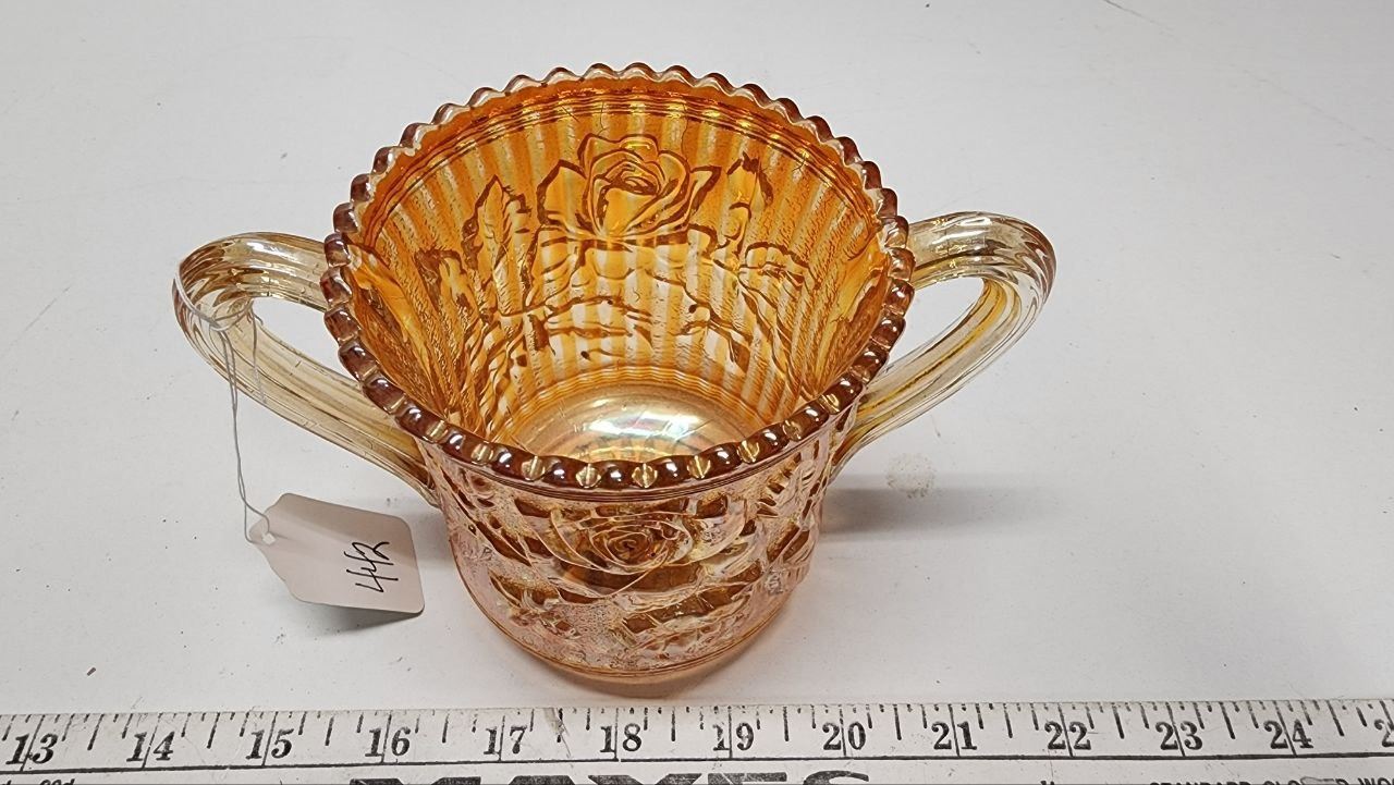 Imperial Marigold Carnival Sugar bowl with "Roses" H-4"
