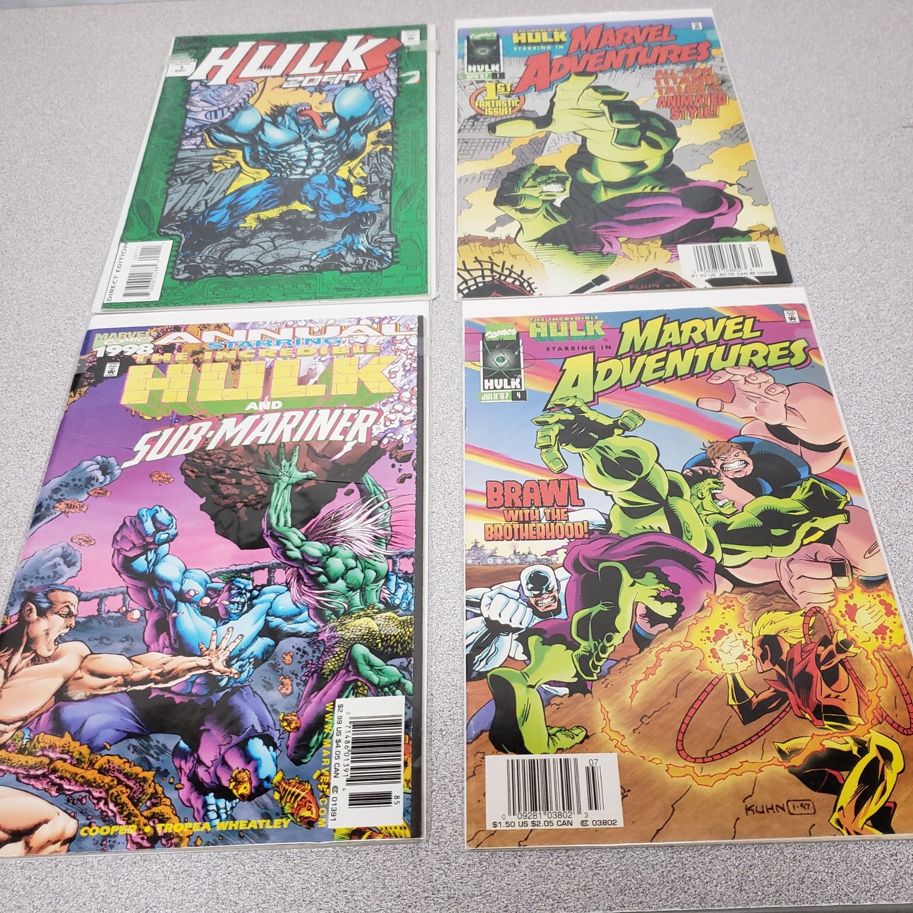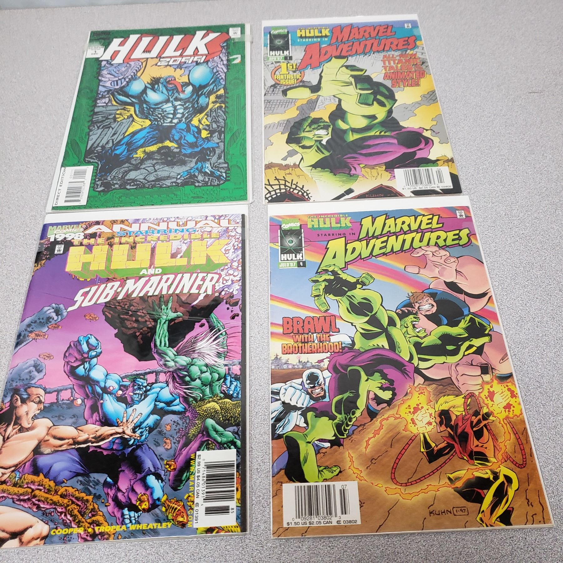 Hulk 2099 #1, Hulk in Marcvel Adventures #1, #4 and 1998 Annual. Comics bagged,boarded and in MINT Condition