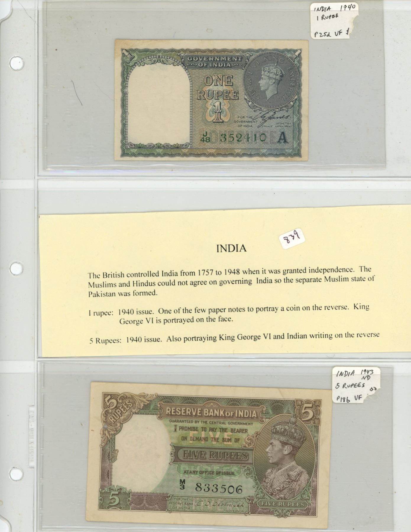 India (British). Lot of 2 World War II notes, both depicting King George VI. 1940 1 Rupee P-25d VF and 1943 5 Rupees P-18b VF.